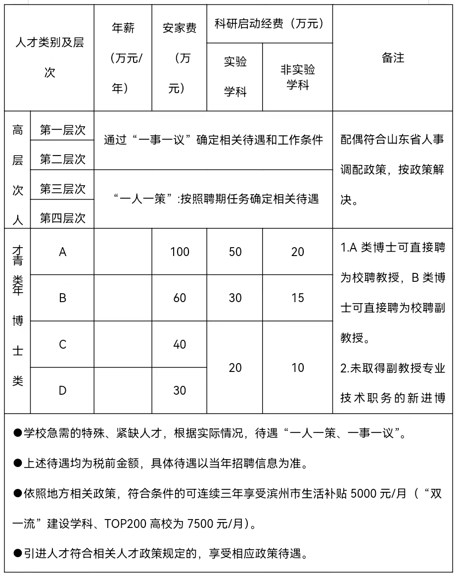 (四)引进人才可根据滨州市政策拎包免费租住人才公寓,也可入住学校周转房。