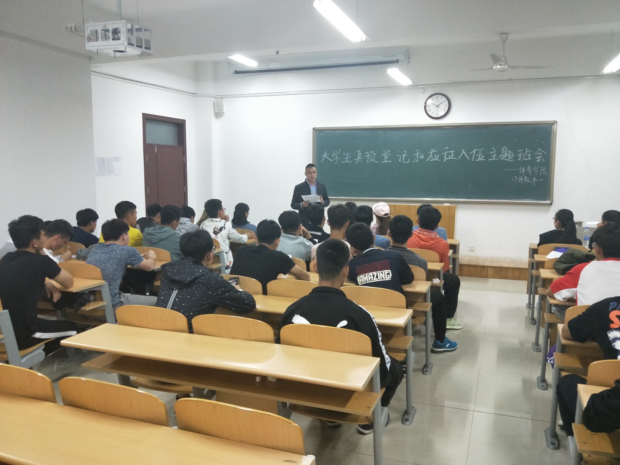 为响应国家号召,进一步做好我院2018年大学生兵役登记和应征入伍工作,5月1日晚,太阳成集团122ccvip组织召开大学生兵役登记和应征入伍主题班会。本次班会由各班班主任主持,太阳成集团122ccvip全体学生参加。