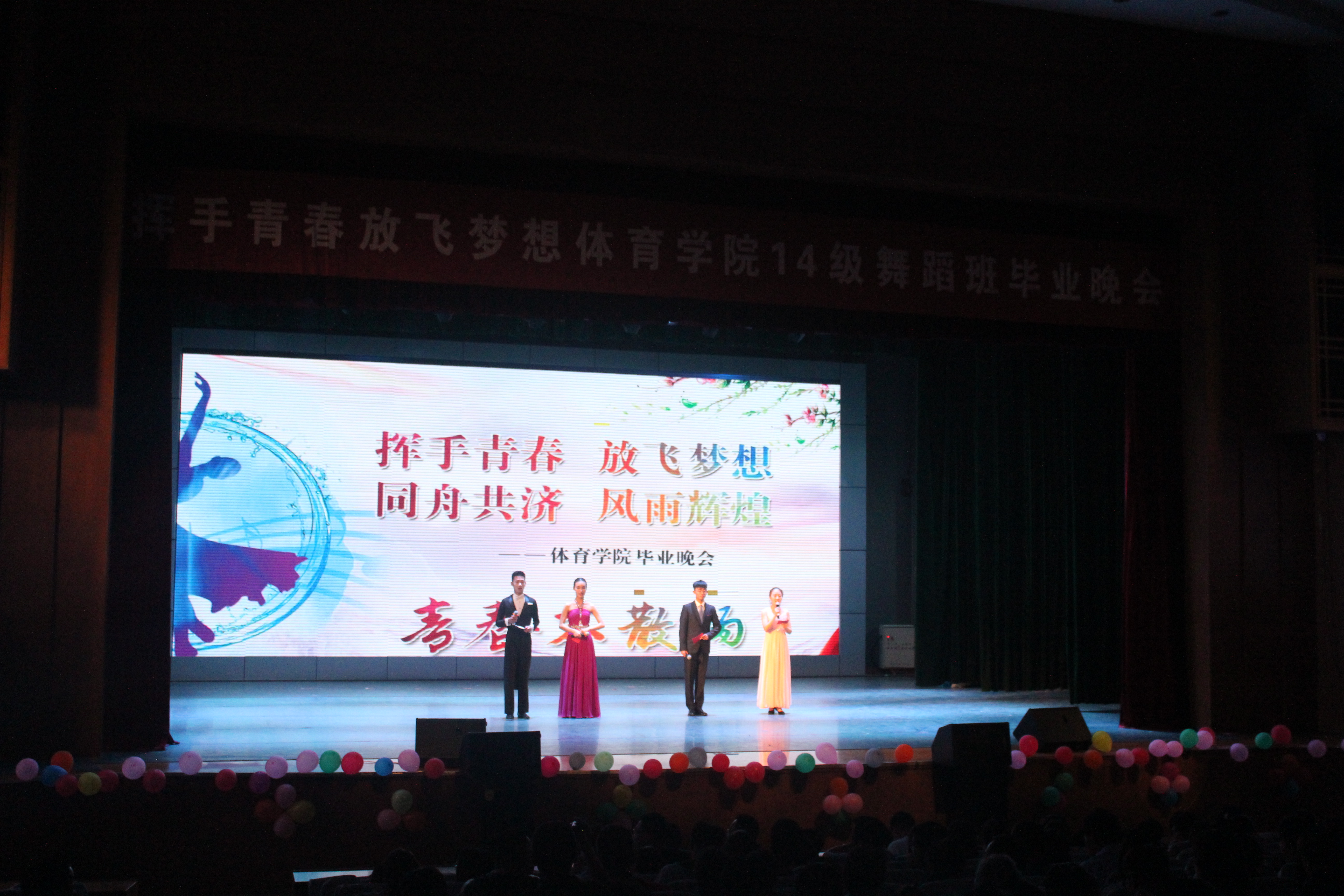 6月毕业季,青春不散场。晚会伴随着动感十足的开场舞啦啦操拉开了帷幕,宣誓着青春的激情与活力。随后,一个个精心编排的节目陆续上演,整场晚会节目形式多样、内容丰富。舞蹈《十五个跳舞的公主》生动地展示了我们如花般美丽绽放的青春,是那样的绚丽多彩;我院老师与学生一起带来的舞蹈《沧海一声笑》让晚会进入了高潮;健美操《舞动青春》与舞台剧《大学时光》让我们再次领略了青春的热情以及成长的苦涩;一首歌曲《祝你一路顺风》和大屏幕上呈现的毕业照深情的感动着在场的每一个人,老师和同学们都不禁潸然泪下,只为这来之不易的大学生活与青春和即将离别的不舍;最后,晚会在舞台剧《毕业不说再见》中结束。整场晚会精彩纷呈,现场欢呼声、掌声不绝于耳,演员们精彩的表演充分展现了我院学子多才多艺的一面。