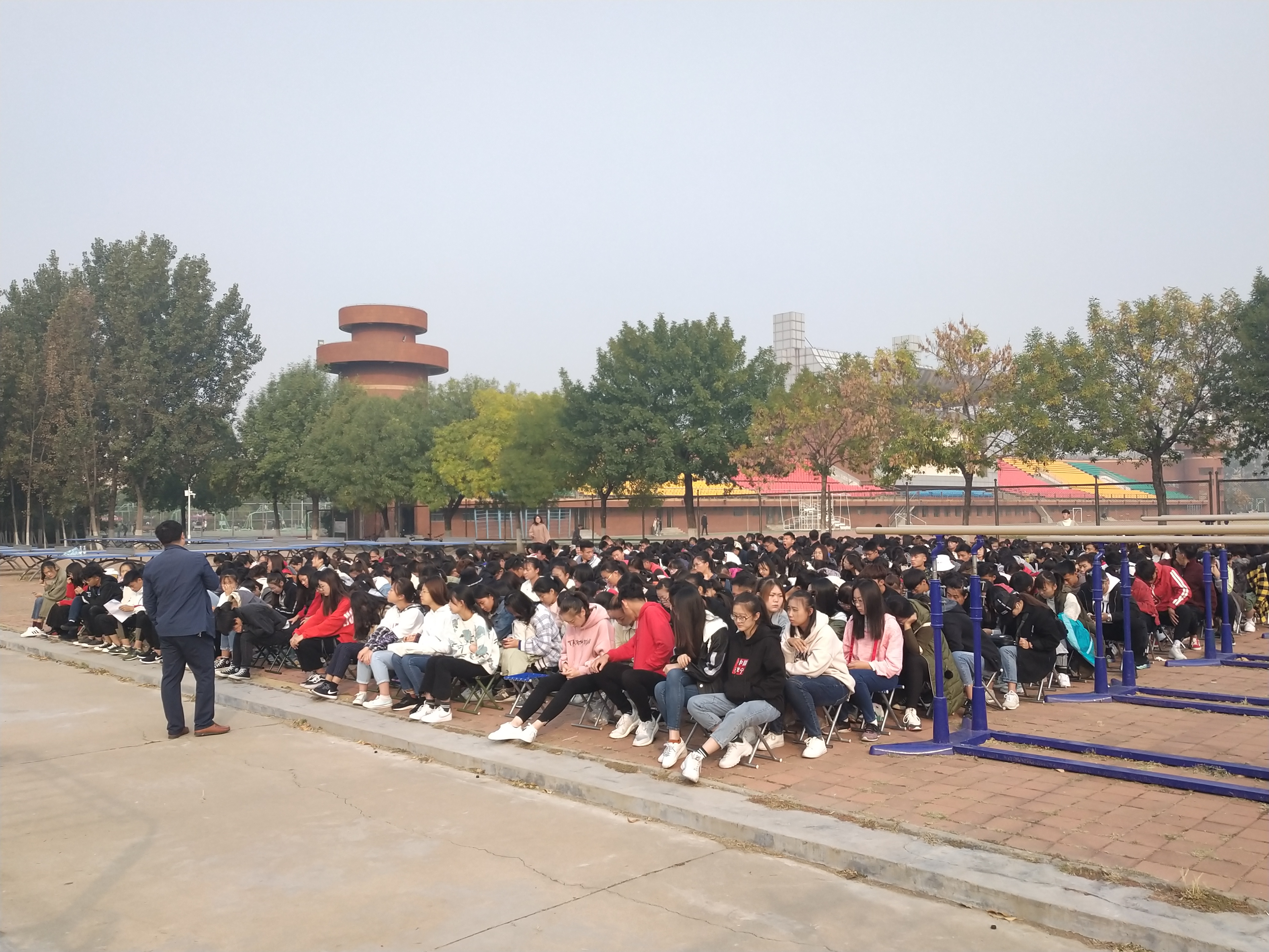 为加强学生消防安全意识,普及消防知识。10月13日上午8点,太阳成集团122ccvip组织2018级学生在田径场南门参加了由学校保卫处组织的消防安全培训。