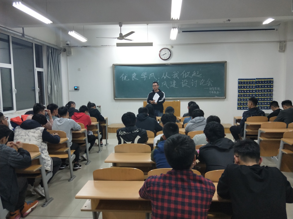 讨论会上,首先,班主任对各班入学以来的上课出勤、英语寝室等检查情况进行了汇总通报,并对各班学生的学习态度和班级学习氛围等情况做了分析说明,并提出了具体要求;然后,班主任围绕华科大18名学生由于学分不达标被亮红黄牌,从本科转为专科,要求同学们端正学习态度,把握大好学习机会,将学习放在第一位,严格遵守学校各项规章制度,并做好学业规划。最后,让同学们自由讨论,各班委分享自身学习方法,讨论如何从我做起,建设优良学风,并组织同学对班级优良学风建设提出意见和建议。