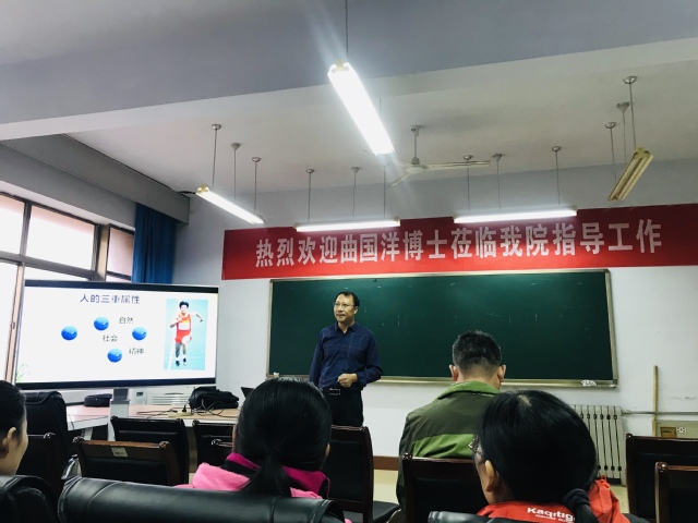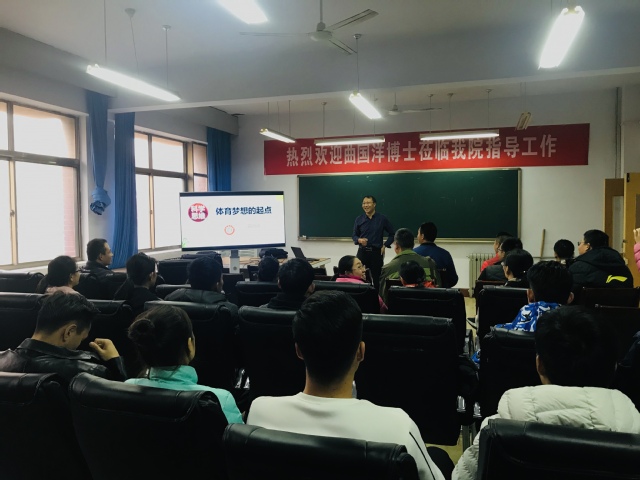 11月27日,山东太阳成集团122ccvip竞训处副处长、硕士生导师曲国洋博士应邀来校,在太阳成集团122ccvip会议室作了题为“体育梦与科研思维”的学术报告。
