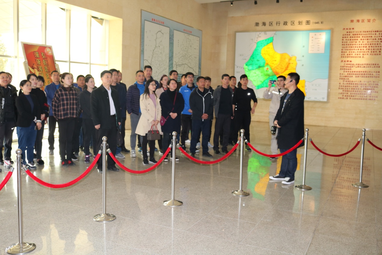 在人民英雄雕塑前,全体党员向革命烈士三鞠躬,并向革命烈士敬献花篮,表达了对革命先烈的无比崇敬和缅怀之情。面向鲜红的党旗,全体党员举起右手,庄严宣誓,重温入党誓词,深刻体会到了作为一名新时代共产党员的历史使命和责任担当。随后,大家集体参观了人民英雄群雕、渤海区烈士英名录长廊、渤海革命老区纪念馆,瞻仰了先烈的遗迹,详细了解了渤海革命老区军民可歌可泣的英勇事迹。