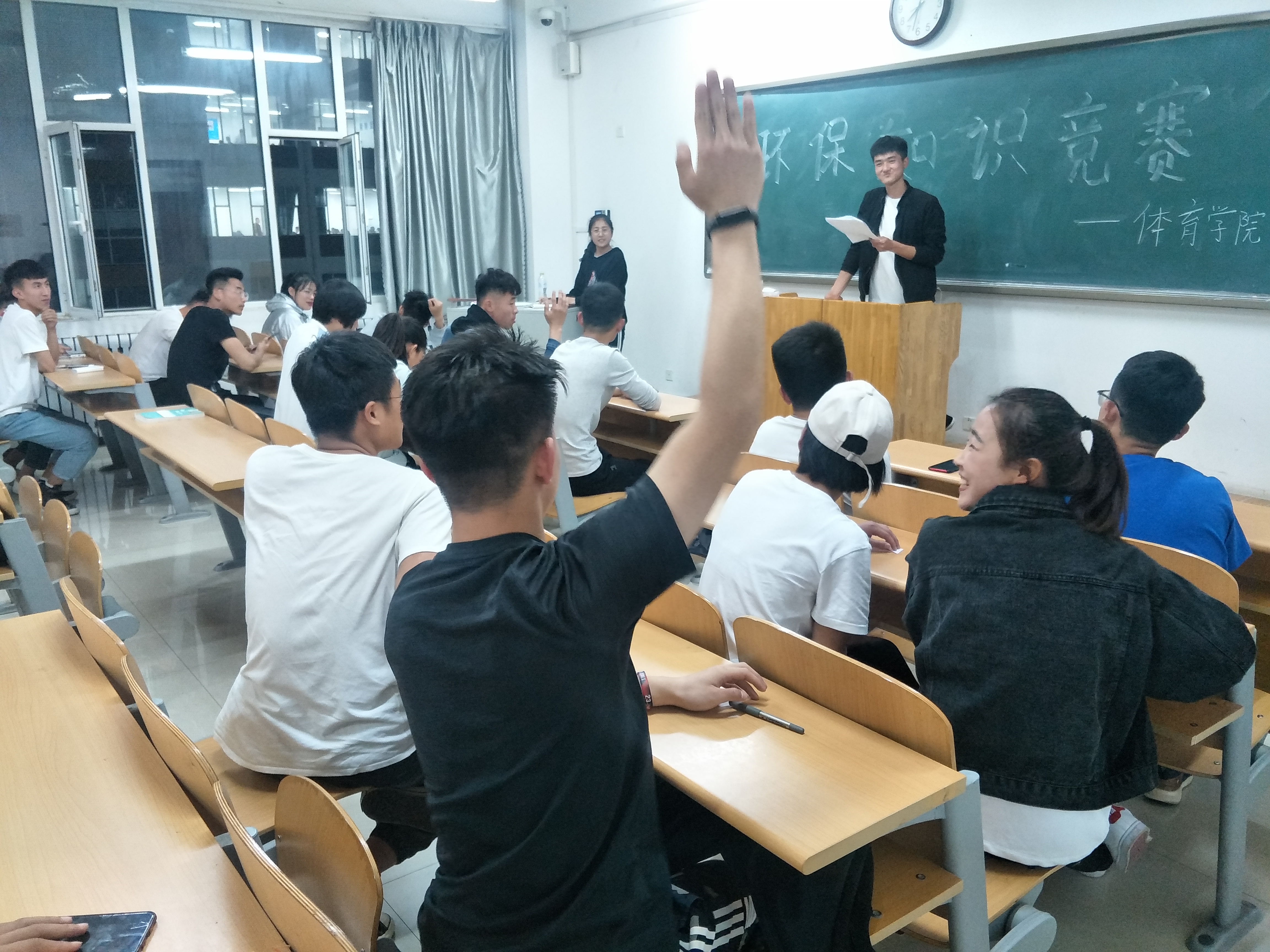 为提高我院学生对环境问题的重视,增强环保意识,4月22日晚七点,太阳成集团122ccvip在八号教学楼413教室组织了环保知识竞赛答题活动,部分18级同学参加比赛。