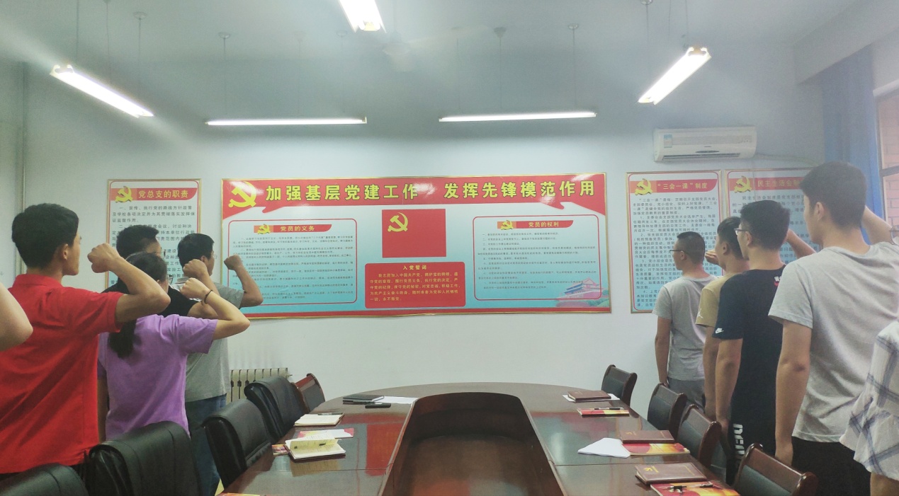 座谈会中,首先,毕业生党员分别进行了发言,讲述自己大学期间的学习、生活经历及成长感悟,畅谈自己在校期间学习生活的体会与感受,衷心表达了对母校的感激与依依不舍之情,并对母校未来的发展送上了美好祝愿。然后,党总支书记、院长马新民分别在珍惜党员身份,强化党员意识,忠诚于党和人民;坚定理想信念,做社会主义核心价值观的践行者;怀揣梦想,把握青春,开创崭新的人生之路三个方面为毕业生党员上了一堂生动的专题党课。他指出,党员要始终牢记党员的责任和义务,不断增强党性修养;要增强宗旨意识,用心服务群众;增强四个意识,做政治上的明白人。他嘱托毕业生党员,要学会把握自我,靠自己的努力做好事业的开渠人。在今后的工作中,要从小事做起、从难事做起,要懂得适应社会,要不断学习,找准自己的优势,要以实现理想,献身祖国发展为目的。最后,全体党员在学生科科长王洪运老师的领誓下,面向党旗,高举右拳,一起重温了入党誓词。