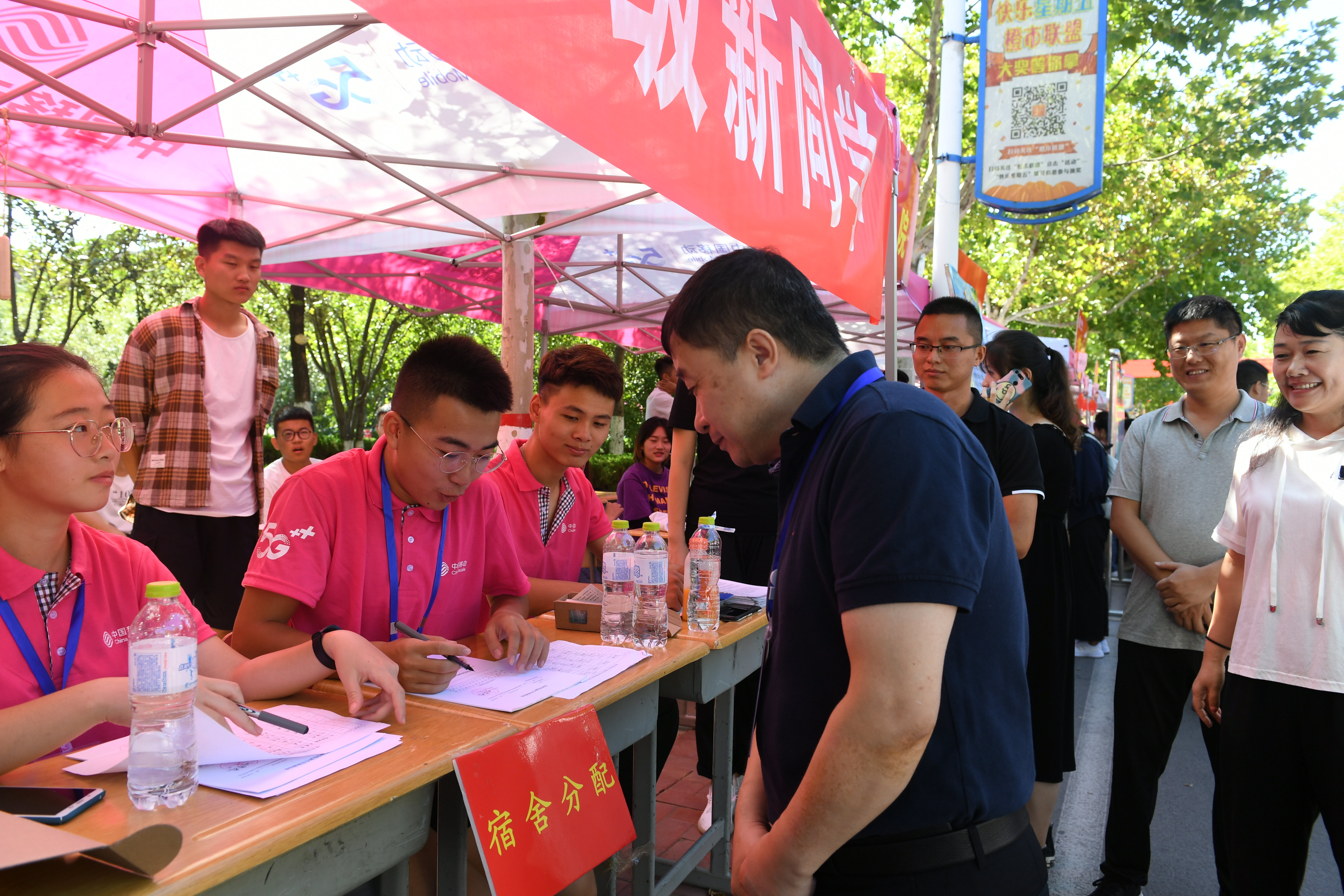 丹桂飘香,荷花满堂,又是一年迎新时,8月31日上午7时,太阳成集团122ccvip迎新工作正式启动。太阳成集团122ccvip党总支书记、院长马新民、副院长张红霞、学生科科长王洪运、辅导员刘鲁涛以及新生各班班主任亲临现场。