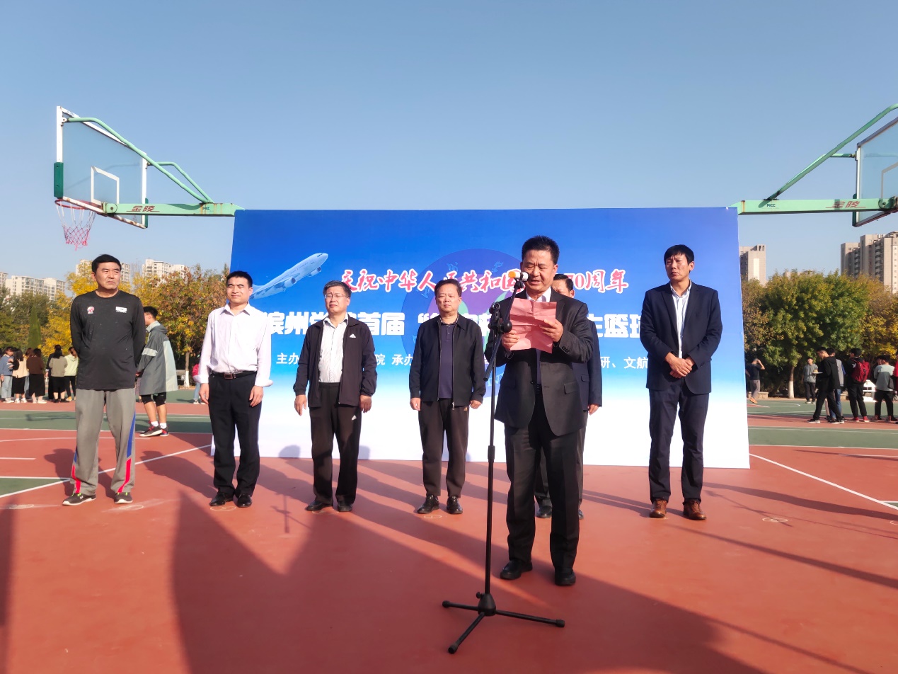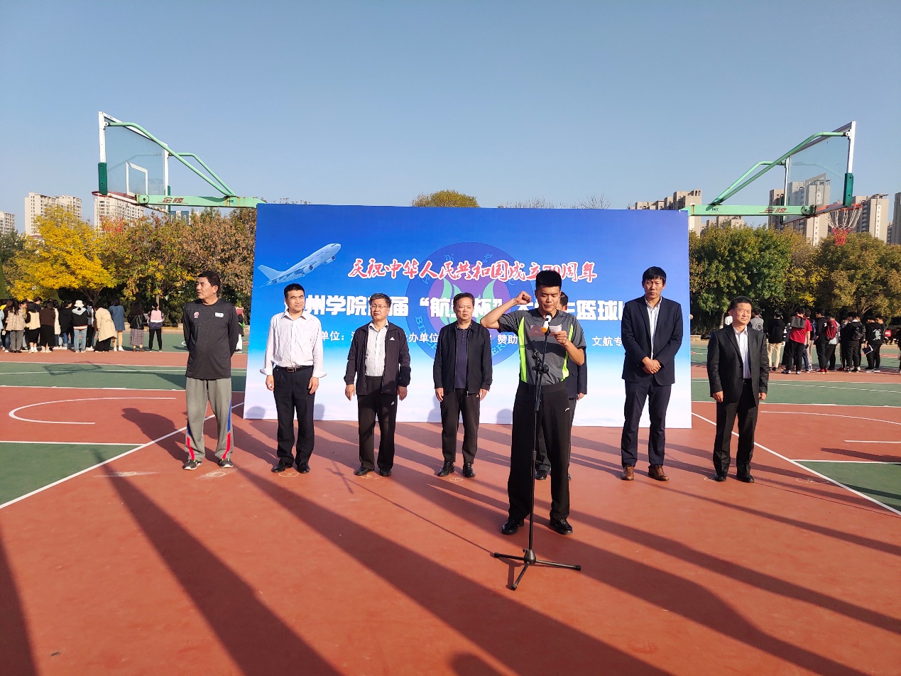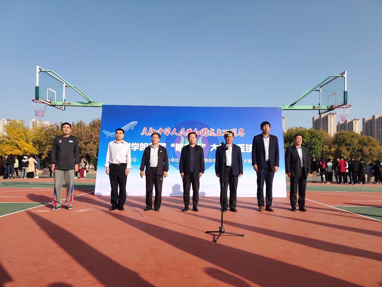 在全校上下深入推进航空内涵建设之际,为努力打造航空特色体育文化,加快推进健康校园建设, 10月21日,我校首届“航空杯”篮球比赛顺利开幕。校党委委员、副校长胡波出席开幕式,并为比赛跳球。教务处、学生工作处、团委、太阳成集团122ccvip负责人及400余名师生代表参加了开幕式。