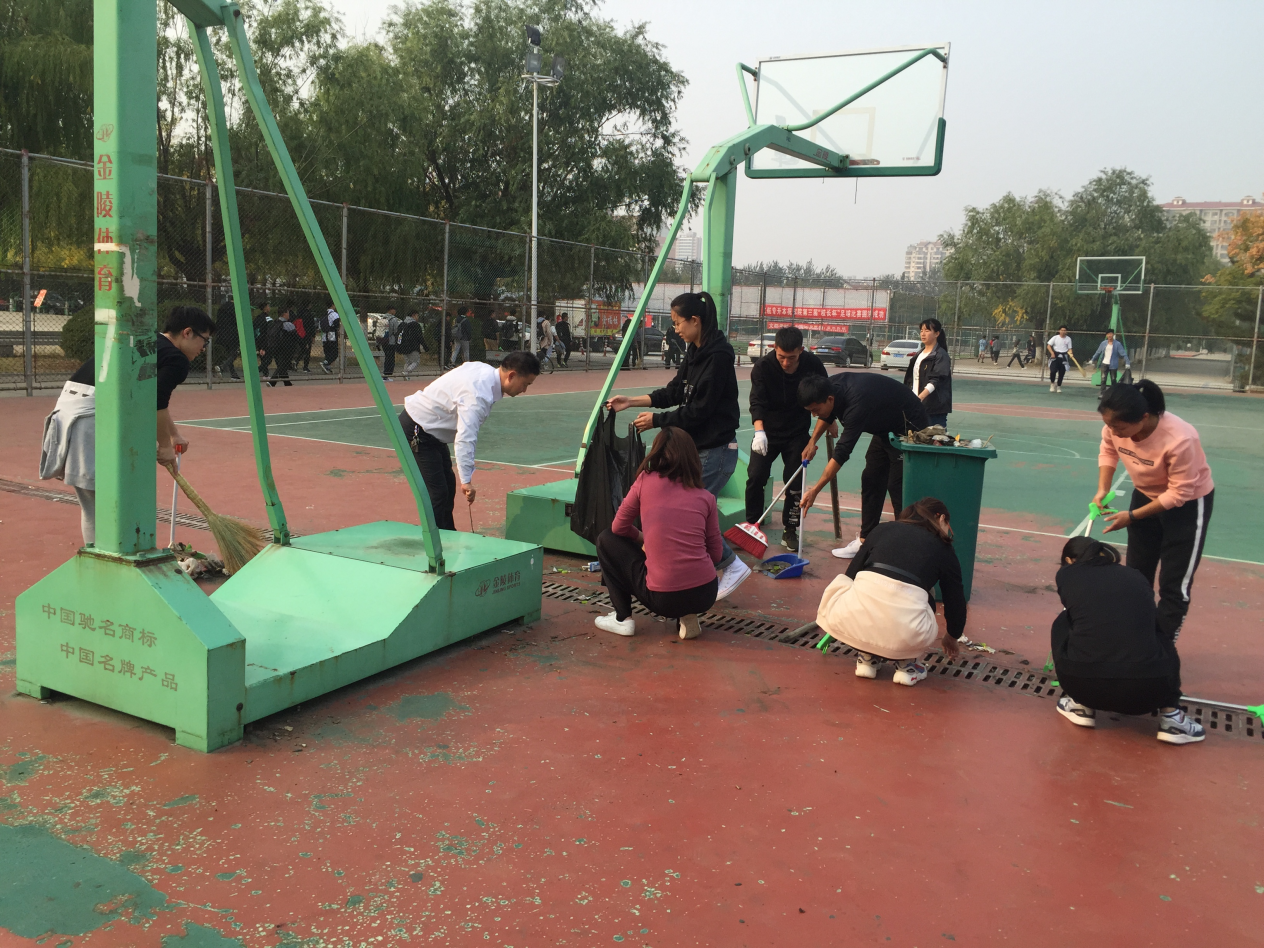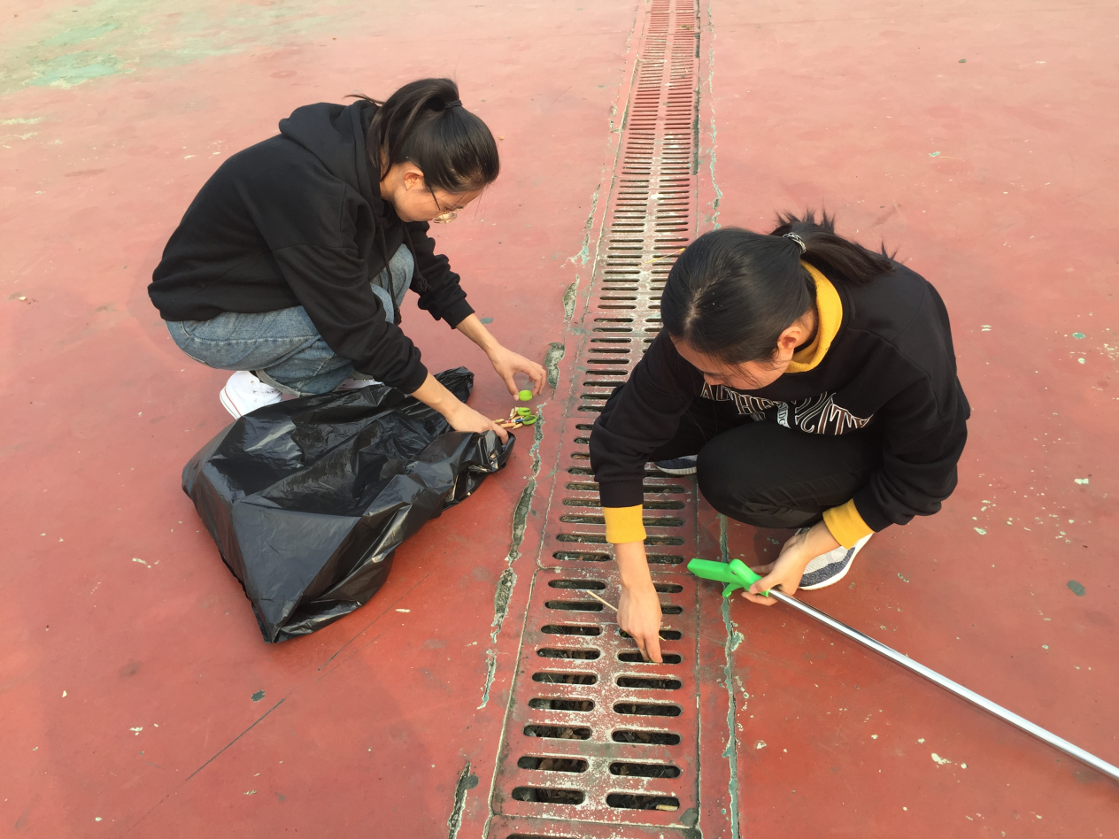 随后,各支部党员按照分工安排有序开展清洁活动,对路边、场地的纸屑、塑料袋、烟头、瓶盖等垃圾进行清理,大家分工明确,合作默契,劳动热情高涨。操场、足球场的草坪中隐藏着大量不易发现的烟头、瓶盖等,老师们都仔细的翻捡出来;下水道里卡着很多矿泉水瓶,影响了雨天排水,老师们也逐个清理出来,大家以严谨认真的态度扎实开展各项清洁活动,保证了劳动质量。篮球架下缝隙里积累了多年的垃圾,腐败难闻且很难清扫,学生党员们发扬不怕脏不怕累的精神攻克“死角”,用夹子和扫帚协力将篮球场16个篮球架全部清理干净。在劳动的过程中,马书记边劳动边和党员们说,“学校是我们的共同的家,运动场是我们学习和工作的地方,维护好学校和运动场的环境,这是我们的初心和使命。”党员同志们也纷纷表示,能用这样一种劳动实践的方式为学校贡献自己微薄力量、倡导“爱校护校”的行为风尚是很有意义的事情,虽然累,但是很值。经过一个多小时的“奋战”,运动场上的白色垃圾被清理干净,周边环境卫生也显著改善,大家脸上都洋溢着劳动带来的喜悦。