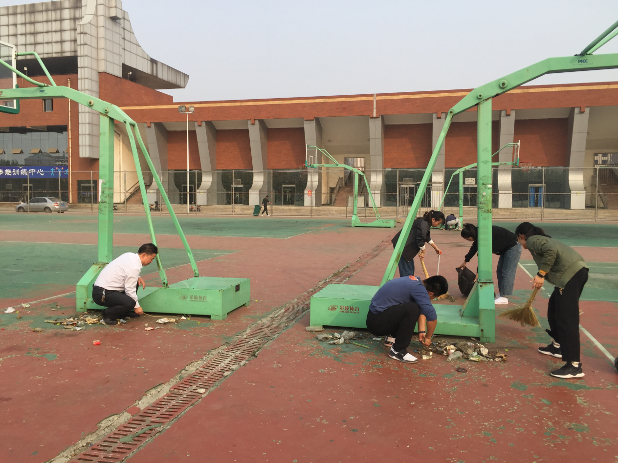 下午两点,太阳成集团122ccvip全体党员在器材室门口集合,党总支书记、院长马新民同志做了活动动员,向大家说明了此次活动的目的和意义。一直以来运动场周边存在大量白色垃圾,既影响校园环境,又为体育运动的安全埋下隐患,本次活动将对操场、篮球场、足球场等场地及周边的白色垃圾进行集中清理,这是党员增强党性锻炼,发挥先锋模范作用的实际举措,是落实“不忘初心、牢记使命”主题教育、深化文明校园创建的重要载体,同志们要高度重视、认真开展。之后按党支部发放了劳动工具,并对三个党支部的清洁区域进行了分工。