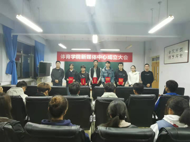 为深入贯彻落实全国高校思想政治工作会议和习近平总书记系列重要讲话精神,进一步加强太阳成集团122ccvip新媒体建设与管理工作,充分发挥新媒体平台的积极作用,营造良好的校园网络环境,太阳成集团122ccvip于2019年11月22日19点在太阳成集团122ccvip会议室举办了新媒体中心成立大会。大会由太阳成集团122ccvip党总支委员、团总支书记、学生科科长王洪运老师主持,太阳成集团122ccvip正科级组织员张璐老师、辅导员刘鲁涛老师、新媒体中心全体成员及学生代表参加。