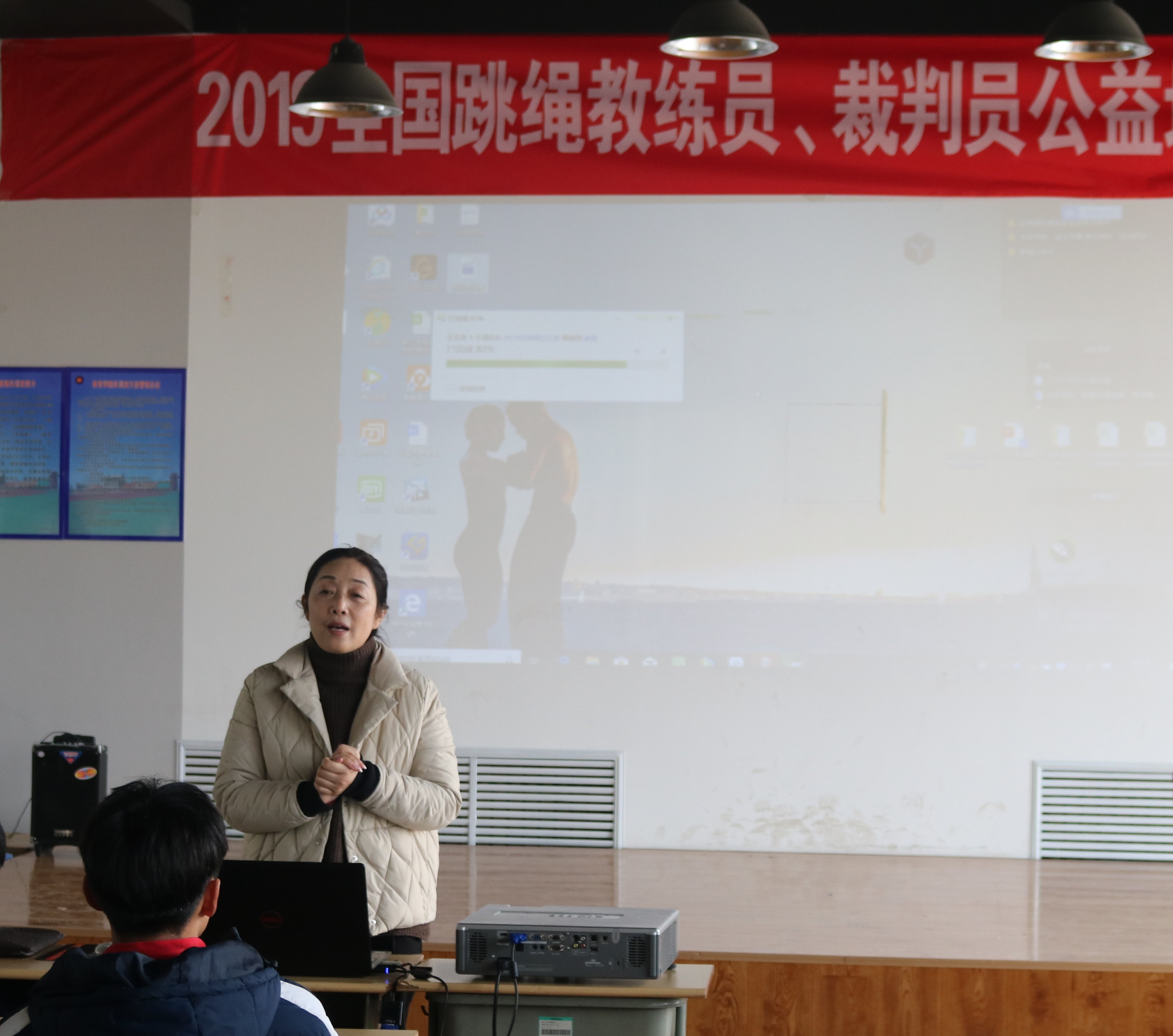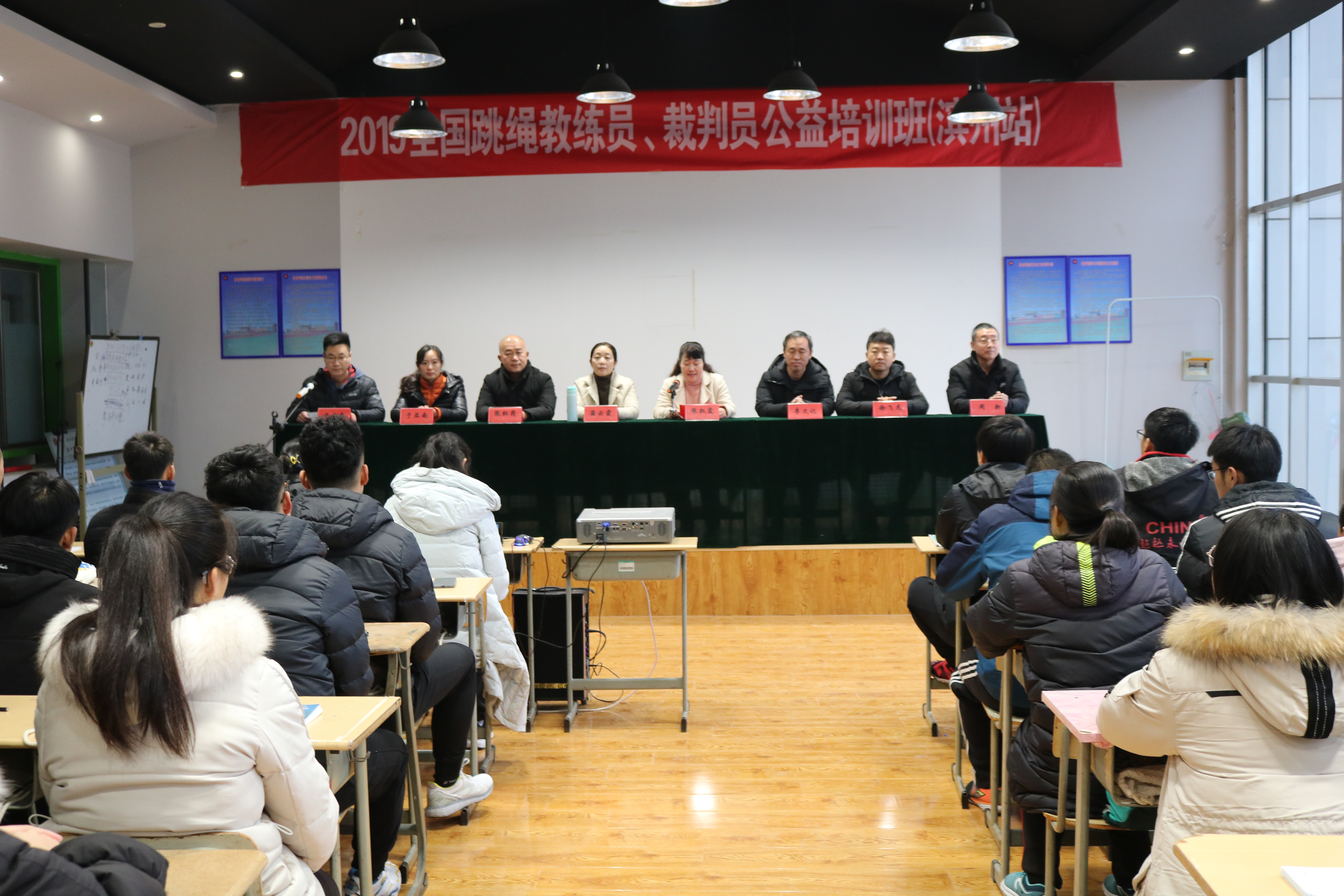 12月21日上午9点,开班仪式在滨州学院顺利进行。出席仪式的领导嘉宾有,跳绳国际级裁判、国家级培训导师崔云霞,山东省跳绳协会会长李文记,山东省跳绳协会副会长、国家级培训导师张红岗,山东省跳绳协会副会长徐飞龙,山东省跳绳协会执行秘书长于亚南,滨州学院太阳成集团122ccvip副院长张红霞,滨州学院太阳成集团122ccvip体育艺术教研室主任周新,滨州学院跳绳队教练于宏亮,仪式上张红霞致欢迎词,介绍近年来滨州学院跳绳运动开展情况以及明年跳绳工作计划,李文记会长致辞,介绍近年来国内跳绳运动发展情况,鼓励学员们与时俱进,提高跳绳运动教学能力,为推广普及跳绳项目继续努力。