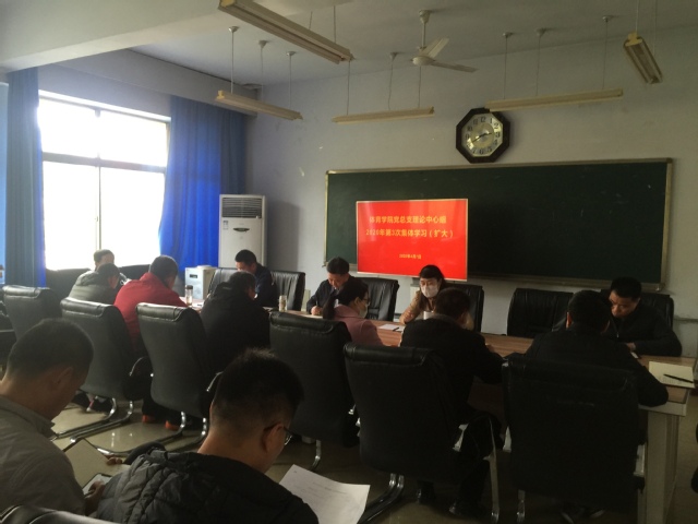 为进一步学习领会刘春华书记和李长海校长在2020年度工作会议上的讲话精神,将学院工作、体育工作更好地与学校发展结合起来,2020年4月7日下午,太阳成集团122ccvip党总支组织召开理论中心组第三次集体学习扩大会议,理论学习中心组全体成员、各教研室主任、行政办公人员参加了集体学习。