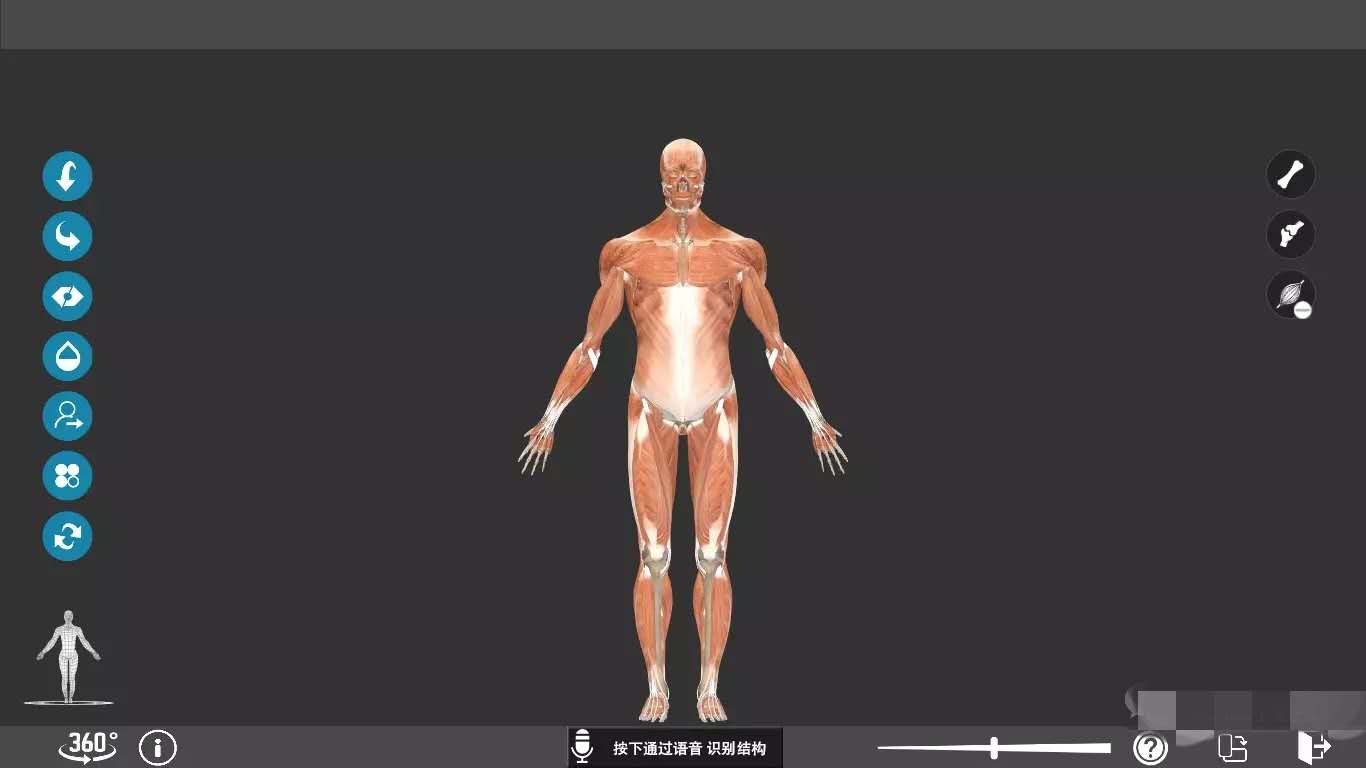 3、系统提供360度自动旋转动画功能、3D结构标注展示功能、3D肌肉起止点展示功能、D骨性标记展示功能。