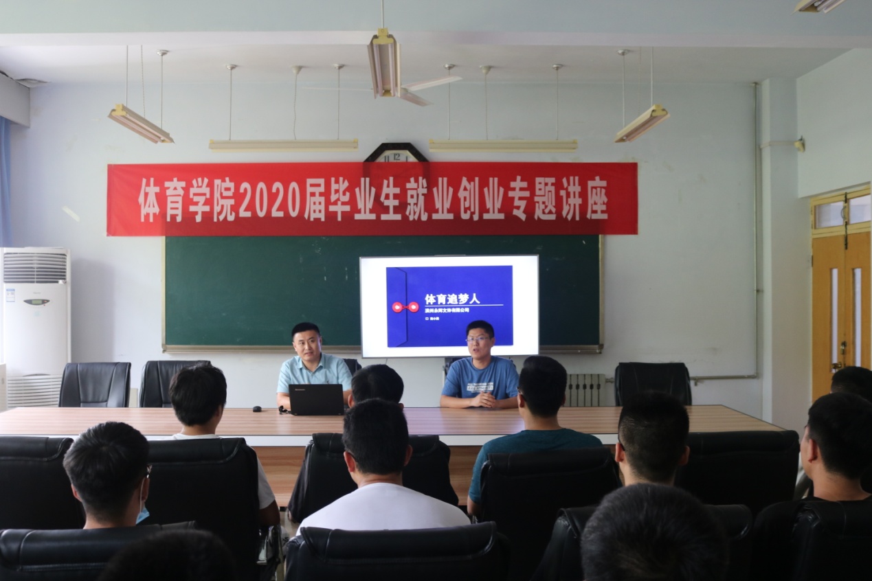 商小勇结合自己体育专业毕业生的亲身经历,分别从播种希望、心路历程、雨后彩虹、不忘初心四个方面,介绍了自己在大学生期间及毕业后的就业创业经历与经验,讲述了大学期间学习的丰富的文化知识对自己毕业后创业的巨大作用,分享了自己的创业感悟,他鼓励学弟学妹们面临就业时,要摆正自身的就业心态,积极面对,不论何种工作、何种岗位先工作,通过工作磨练意志,积累社会经验,再通过工作将其作为自己的事业,最终形成先就业后职业再事业的就业形式。最后,他与在场的学弟学妹们进行交流互动,解答了学弟学妹们关于就业、创业的各种问题。