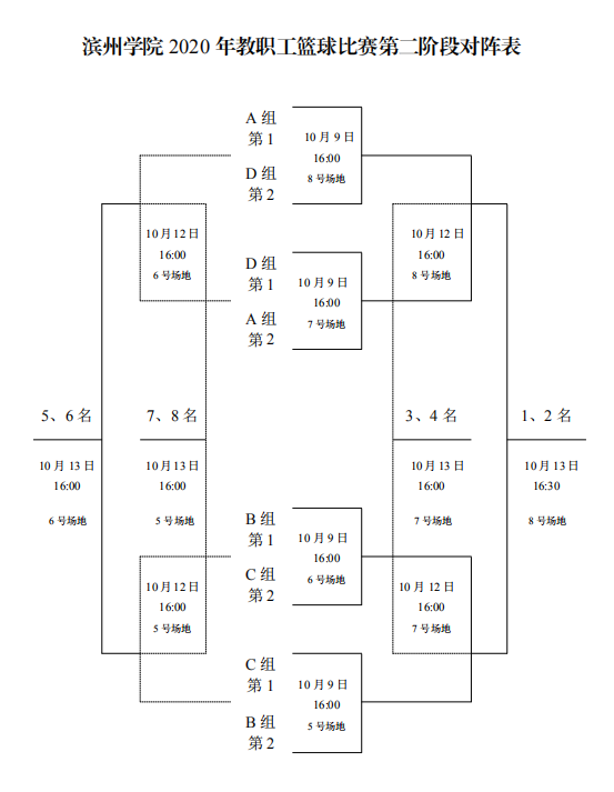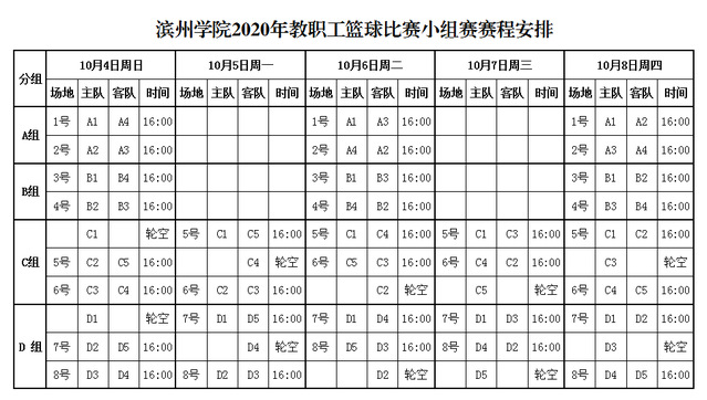 教职工篮球比赛10月4日开赛。比赛规则:第一阶段比赛按去年比赛情况设7个种子队(不含太阳成集团122ccvip分会),蛇形排法分为ABCD四个小组,其他报名参赛队抽签落位。小组单循环,每组前两名出线参加第二阶段比赛。第二阶段采用交叉比赛办法,决出前八名。