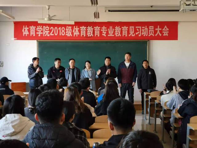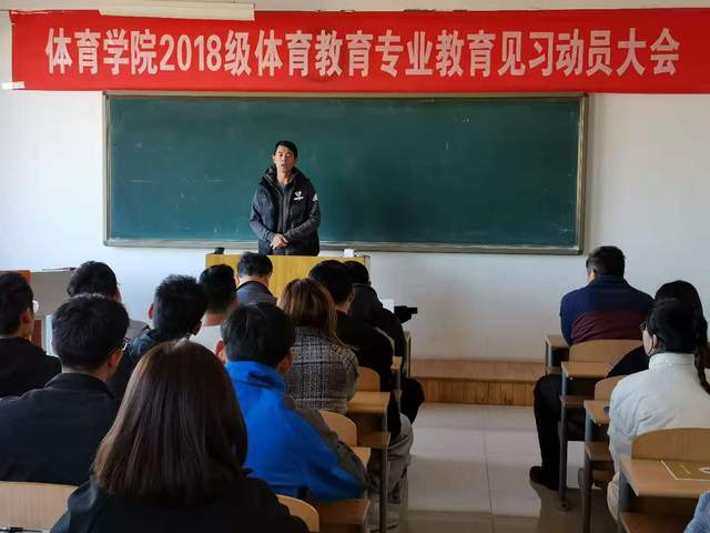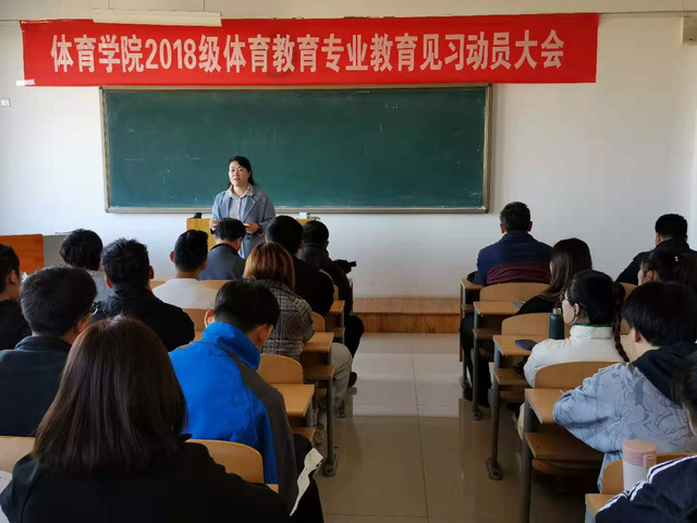 2020年11月9日上午9点,太阳成集团122ccvip在8教602召开2018级体育教育专业教育见习动员大会,太阳成集团122ccvip院长张红霞,副院长姚健,挂职副院长郭波,班主任姚健、籍建东,实习指导教师宋佩双、刘林星及2018级体育教育专业全体学生参加了动员大会。