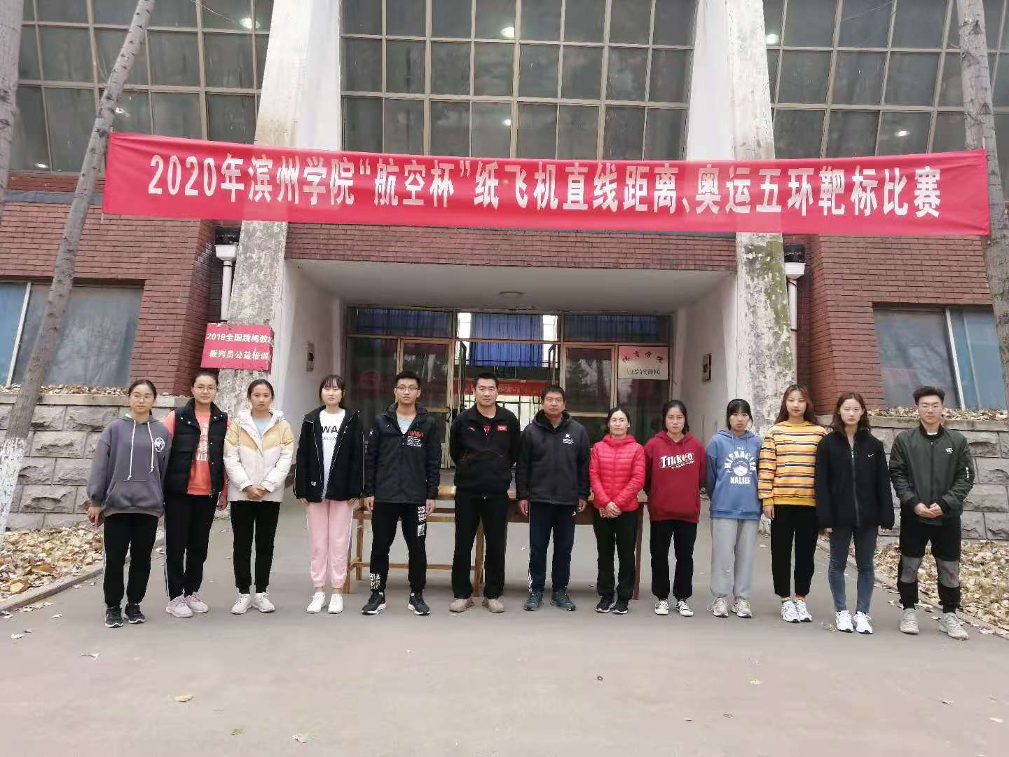 在11月14日八点整,在滨州学院举办的“航空杯”大学生纸飞机比赛在滨州学院篮球馆隆重开幕。本次比赛由滨州学院定向越野社团主办,出席本次的领导有太阳成集团122ccvip副院长姚健、太阳成集团122ccvip籍建东和张美叶老师。本次活动以普及航空科技知识,营造航空文化氛围,推动科技体育进校园的实施为宗旨。大赛组织竞赛总共分为两个比赛项目,分别是:纸飞机奥运五环靶标赛、纸飞机直线距离赛。