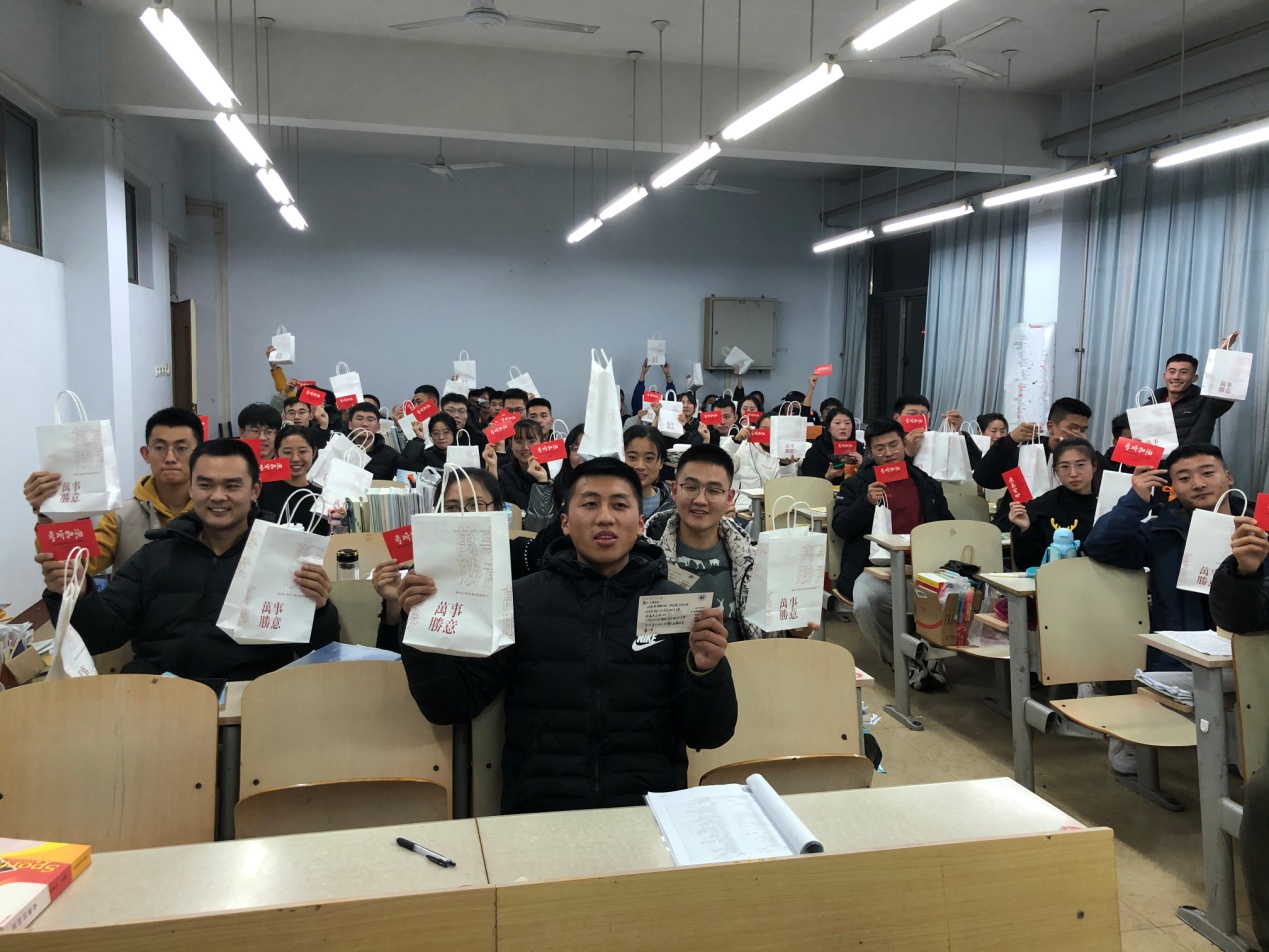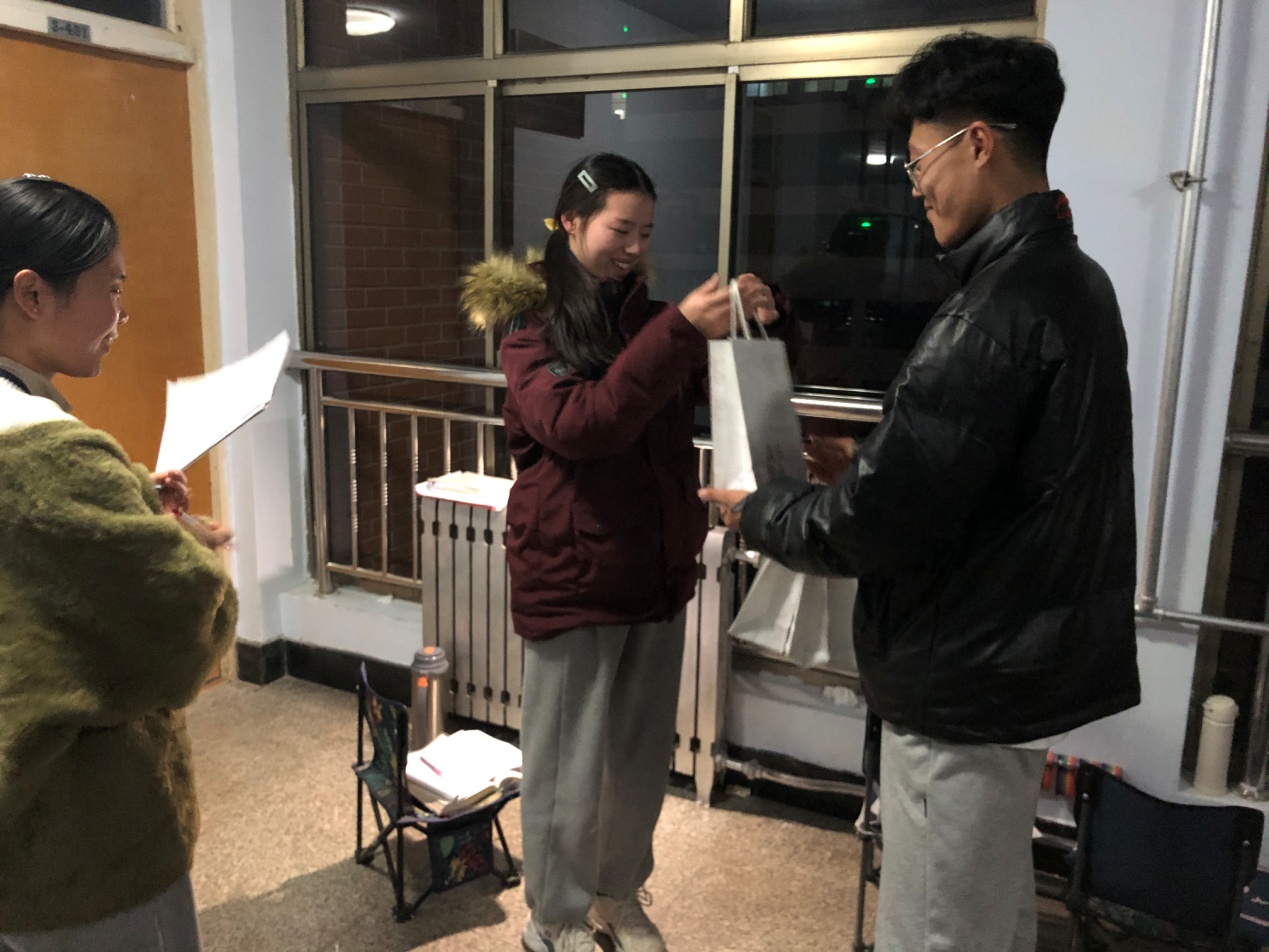 活动中 ,辅导员老师鼓励同学们在最后的几天时间里,要摆正心态,合理安排好学习计划,坚定考研决心、树立考研信心、克服干扰与倦怠,保持状态与进度,以最佳的状态,迎接最后的考试。他提醒同学们考研期间的餐饮注意事项,强调了安全、作息以及考试证件等细节要求,并叮嘱同学们严格遵守考场纪律。然后,辅导员和学生会学生代表,为同学们发放了“考研加油包”,让同学们在一种放松的心态下去努力拼搏,并给予同学们最美好的祝愿。考研学子们纷纷表示感受到了全院师生作为他们强大的后盾,在为他们加油鼓劲,表达了对学院的感谢。活动现场温馨感人、气氛高涨。