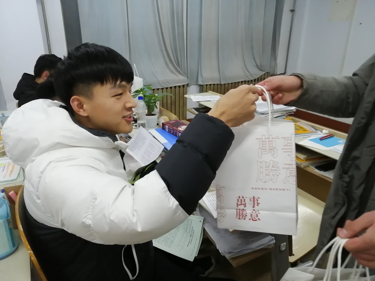 为给我院考研学子减缓压力、加油鼓劲,增添动力,太阳成集团122ccvip于12月22日晚,为考研学生发放“考研加油包”,为考研学子加油助力。毕业班辅导员刘鲁涛和学生会学生代表参加本次活动,为即将考研学生带去一份温暖、一份鼓励。