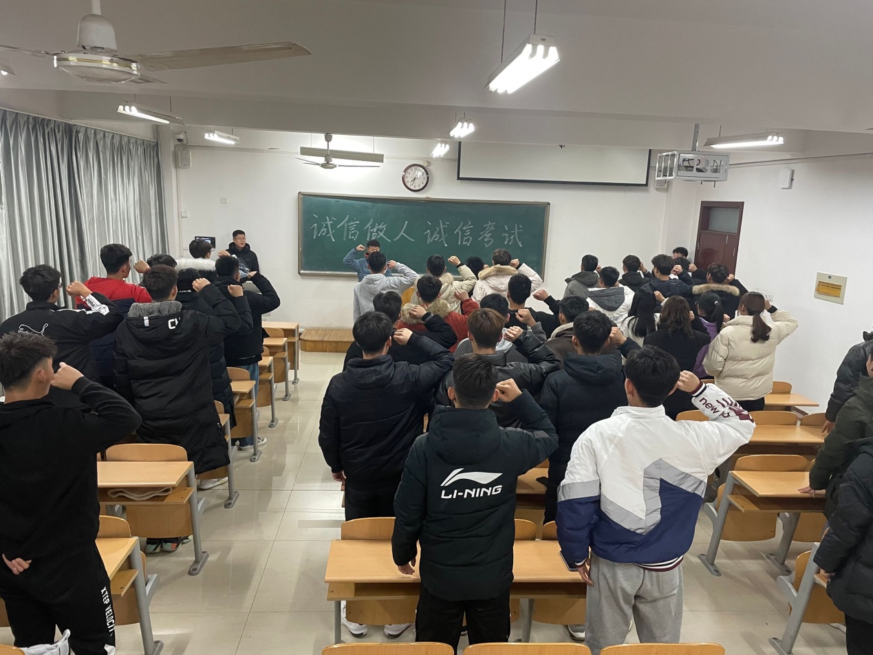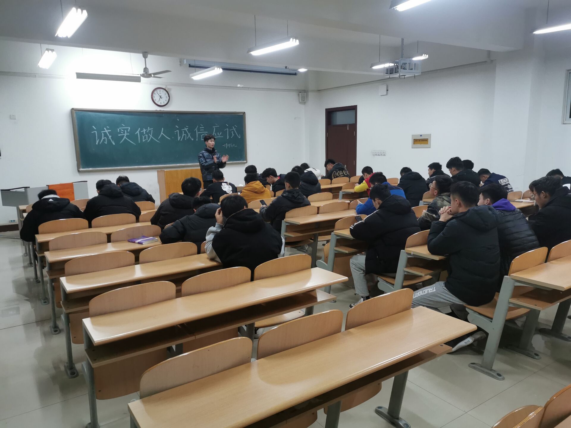 期末考试临近,为加强考风考纪教育,构建勤奋学习、公平竞争、敬畏法纪、诚信应考的考试文化,12月20日晚,太阳成集团122ccvip在各班班会教室召开“诚实做人,诚信考试”主题班会,班会由各班班主任主持,全体学生参加。