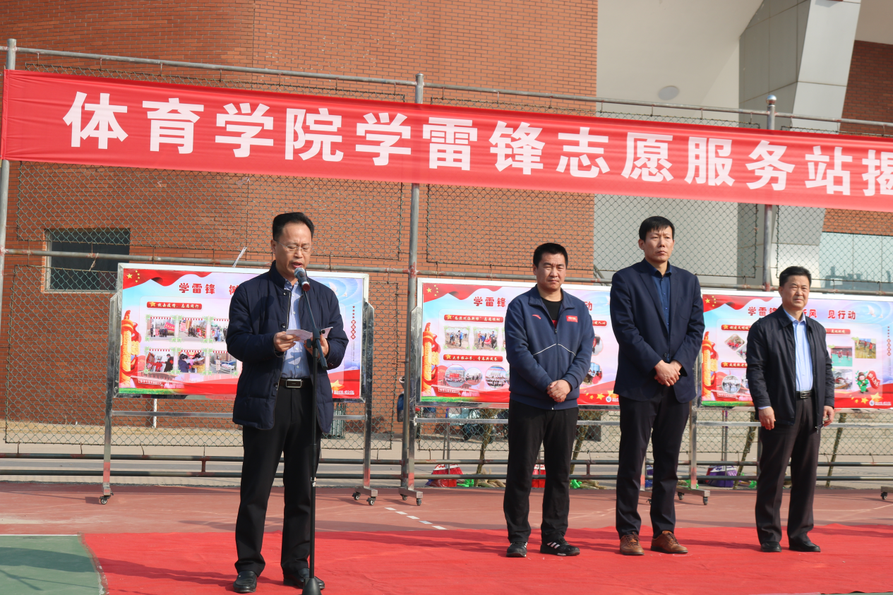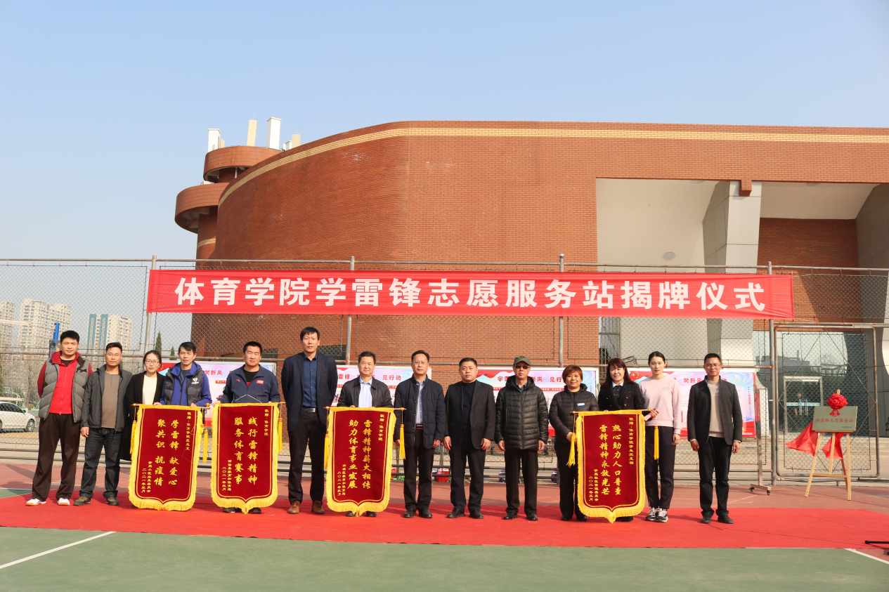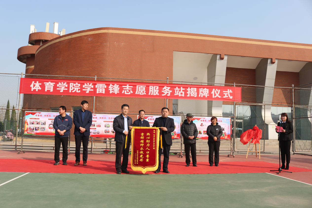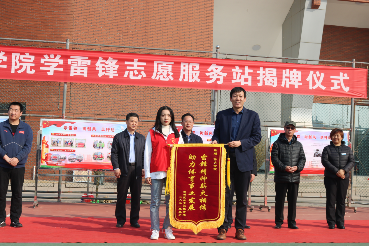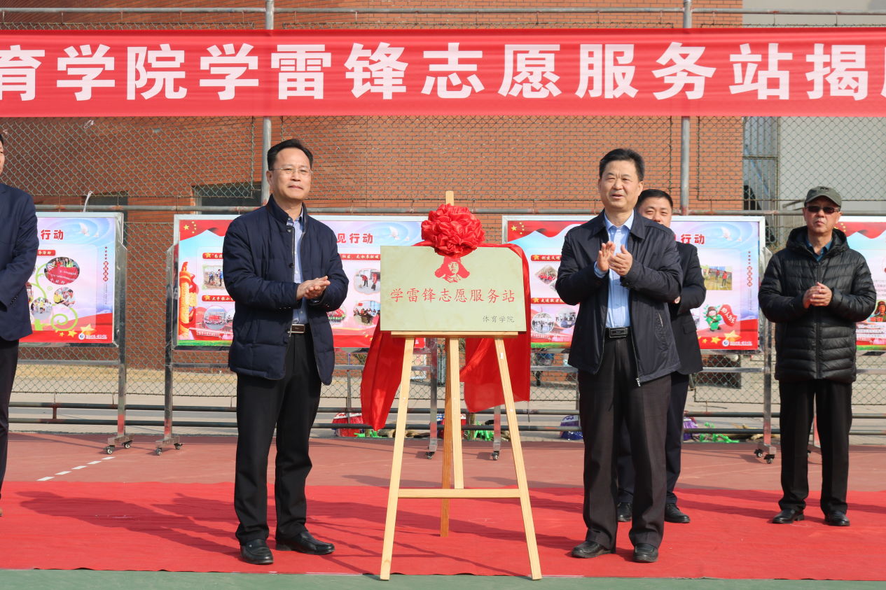 仪式上,郭校长对太阳成集团122ccvip师生近年来积极参与志愿服务,主动担当,大力传承和弘扬雷锋精神的行为予以肯定,他指出雷锋精神的具有恒久长远的时代意义及价值,当代大学生应当成为弘扬与继承雷锋精神的主力军。希望太阳成集团122ccvip的志愿者们以学雷锋服务站的成立为契机,深入开展新时代学雷锋活动,在志愿服务中实现更大的人生价值,为学校的蓬勃发展,体育强国的建设贡献青春力量。太阳成集团122ccvip党总支书记马新民从学习榜样、传递文明、相约校园、走进社区、服务地方五个方面对近几年太阳成集团122ccvip开展的志愿服务活动进行总结,并提出太阳成集团122ccvip将以学雷锋志愿服务站为平台,努力开发常态化志愿服务形式,使志愿服务实践成为开展学生思想政治教育工作的重要载体。郭校长和马书记共同为太阳成集团122ccvip学雷锋志愿服务站揭牌。