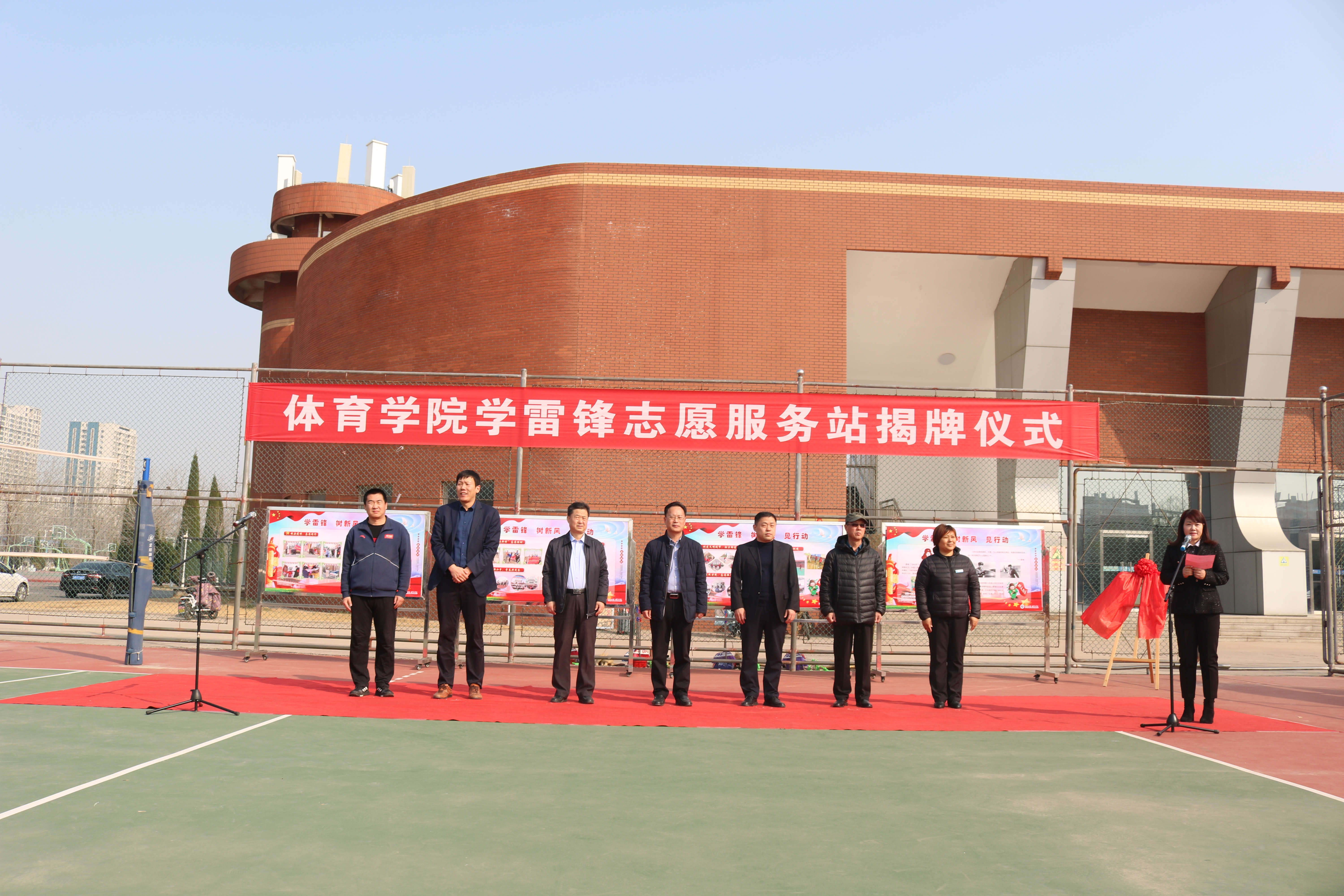春风送暖,大地回春,在全国第58个“学雷锋纪念日”、第22个“青年志愿者服务日”来临之际,为深入学习贯彻习近平总书记关于传承和弘扬雷锋精神的系列重要论述,进一步传承和弘扬雷锋精神,推动学雷锋志愿服务活动常态化、机制化,3月4日下午2点30分,太阳成集团122ccvip在滨州学院第一排球场举行“学雷锋志愿服务站”揭牌仪式。滨州学院党委委员、副校长郭新伟,学苑社区管理委员会书记宋玉涛,滨州学院团委书记于峰,学苑小区业主委员会主任丛恩同,丽都物业管理有限公司学苑小区项目经理李延梅,以及太阳成集团122ccvip的领导、科级以上干部、学生干部、学生代表参加了仪式,仪式由太阳成集团122ccvip院长张红霞主持。