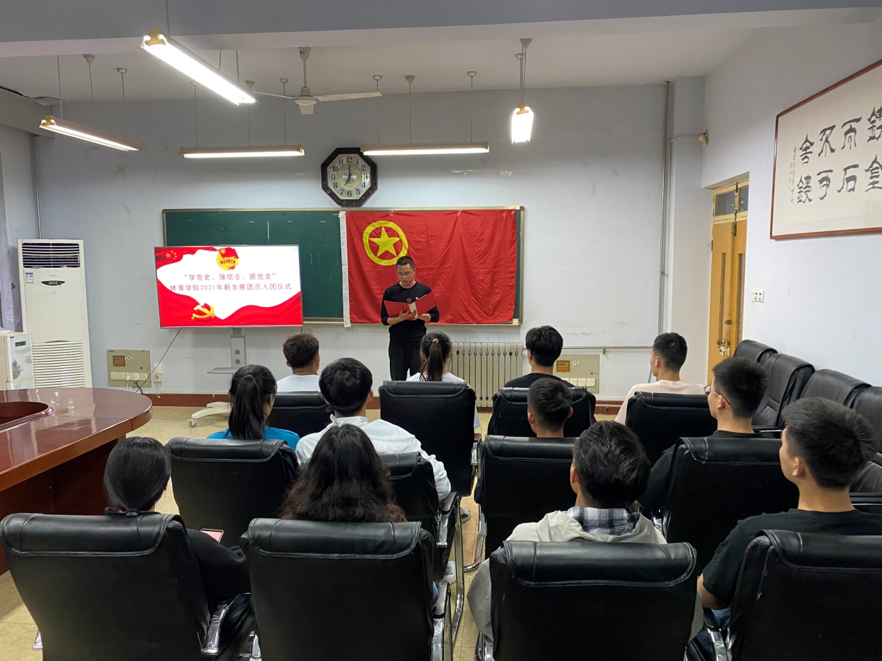 为了弘扬五四精神,增强共青团的吸引力、凝聚力和战斗力,5月14日,太阳成集团122ccvip团总支在学院会议室举办2021年新发展团员入团仪式,太阳成集团122ccvip团总支兼职副书记刘鲁涛、黄克帅,部分老团员代表以及新发展团员参加了入团仪式。太阳成集团122ccvip2021年经学生个人申请、班级团支部推荐、团总支审批,共四位同学光荣的加入了中国共产主义青年团。