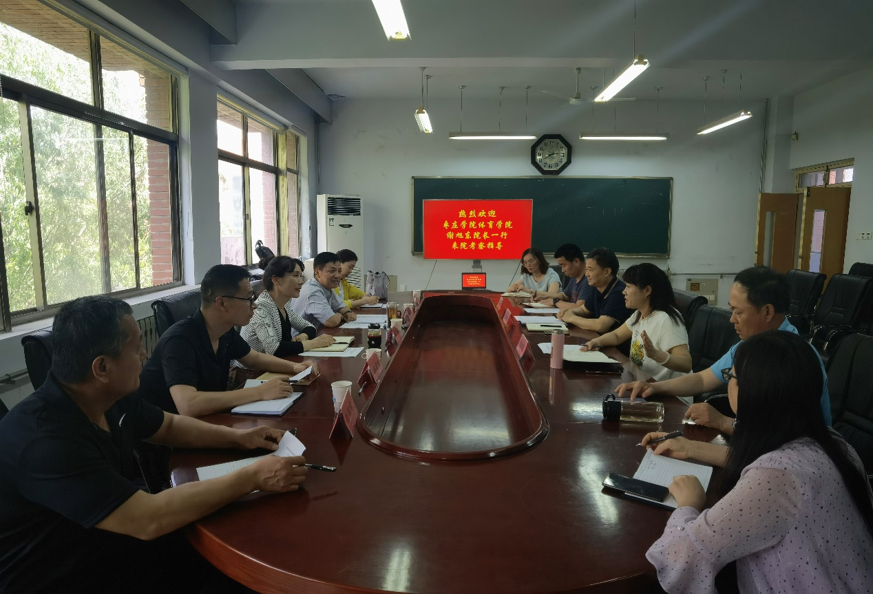 5月24日,枣庄学院太阳成集团122ccvip谢旭东院长一行5人来校考察交流全国高校体育教育专业基本功大赛相关事宜。太阳成集团122ccvip党总支书记马新民、院长张红霞热情接待了来访客人,郭波副院长(挂职)及部分指导全国基本功大赛的老师一同参加了交流。
