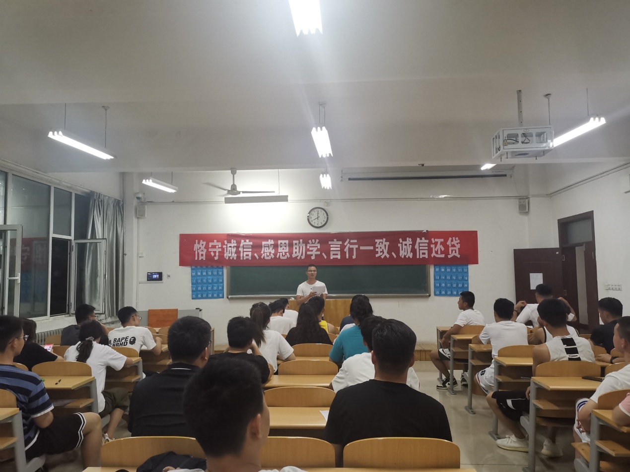 本次主题班会通过ppt宣传、案例讲解、诚信签名等形式召开,主要是为了全面提高大学生的诚信意识,树立诚信理念,养成“诚信待人、诚信立身、诚信还贷”的良好习惯,并积极引导广大青年学生理性消费、珍视诚信,远离不良”校园贷”。同时,也为更好地推进国家资助政策在大学校园的进行,确保国家对大学生的各项资助政策得到更好的贯彻落实。