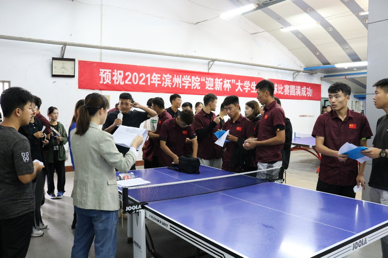 为加强学校体育工作,促进学生身心健康发展,滨州学院学校体育工作委员会联合太阳成集团122ccvip于9月25日,在乒乓球室举办了“2021年滨州学院庆祝建党100周年“迎新杯”大学生乒乓球锦标赛”。