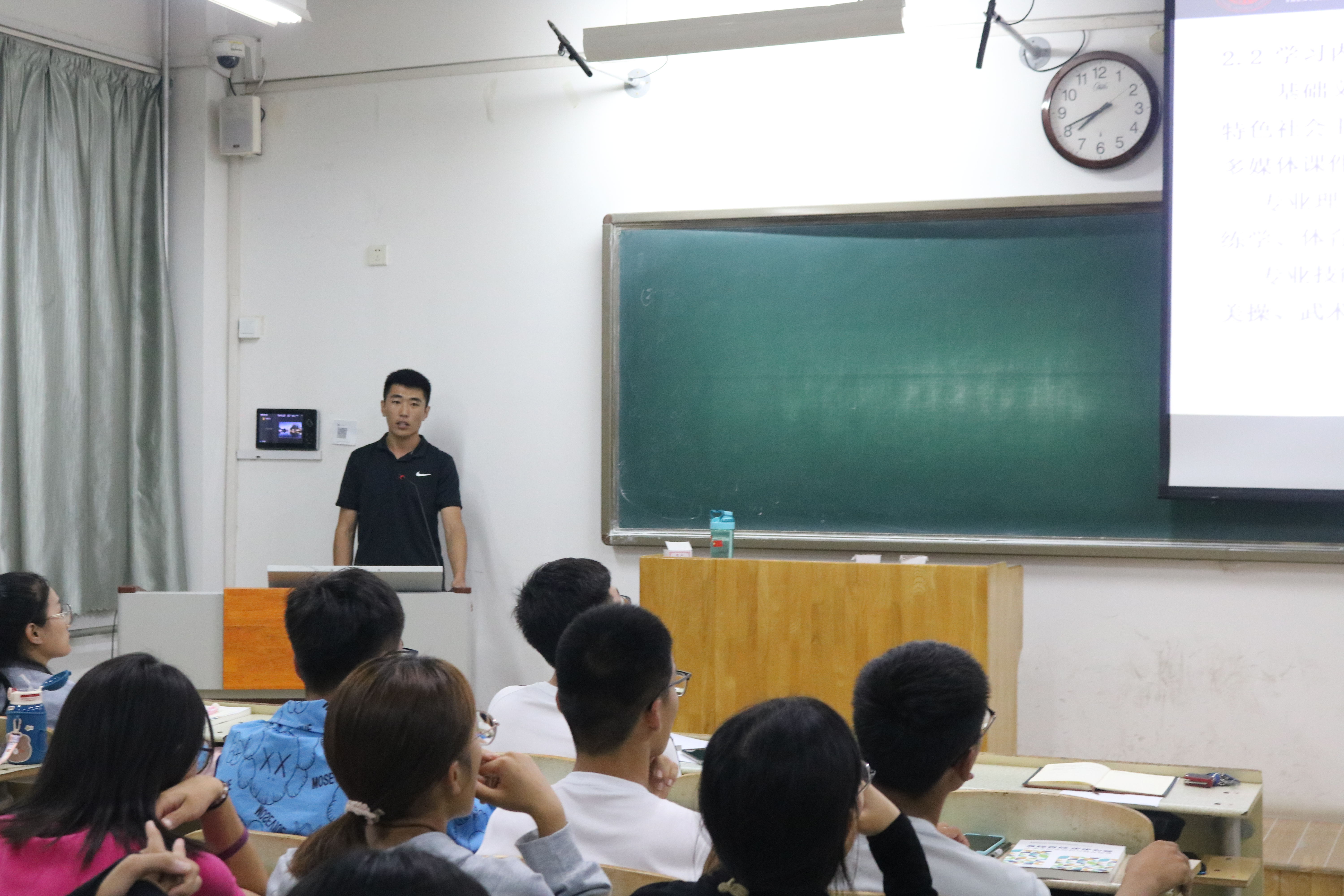 第一位作报告的是优秀校友陈龙刚,在校期间任14体教本1班长,太阳成集团122ccvip学生会主席,18年考取沈阳太阳成集团122ccvip体育教育训练学专业研究生,参与国家社会科学基金1项,省部级课题3项,发表期刊论文2篇。现任机场学院辅导员。陈龙刚从自身出发给21级新生讲述有关进入大学的规划。为他们分析了体育生就业方向和考研的重要性使其认识到专业素养的重要性,以及对未来的影响。给新生了许多有用的建议和经验。