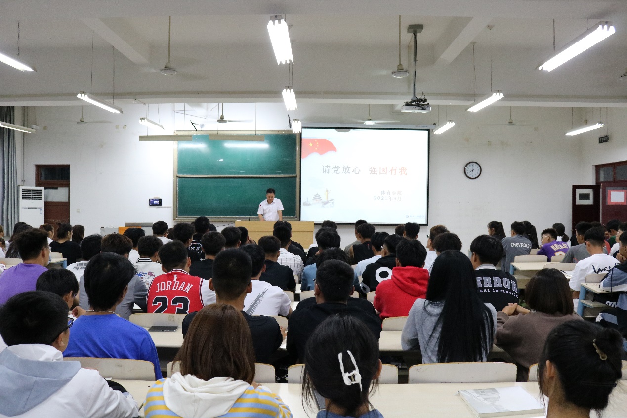 太阳成集团122ccvip党总支书记马新民老师以自己的亲身经历以及身边故事,用家聊家常的方式召开2021级新生年级大会,讲述了什么是体育人,什么是体育精神。还从学生切身生活提出几点建议。指出一定要初心向党始终相信中国共产党。新时代的青年生逢盛世、肩负重任。希望同学们志存高远,始终与党和国家发展同心同向同行;崇德向善,树立和践行社会主义核心价值观;勤学本领,真才实学服务人民报效祖国;甘于奉献,以最美奋斗姿态建功新时代,争做走在时代前列的奋进者、开拓者、奉献者。大学时期一定要树立正确的恋爱观,把自己的心思放在学业上,争取踏上更高台阶。大会最后赵世龙同学带领大家集体宣誓“请党放心,强国有我”喊出了响亮的口号,相信同学们一定会为建设社会主义强国贡献自己的青春力量。随后,2021级全体新生签署了在校生自律协议,规范他们的言行举止为成为栋梁之才保驾护航。