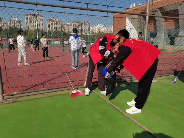 活动开始前,活动负责人对志愿者们提出工作要求,进行了分组并进行了任务分配,此次活动共分成8个卫生清理小组,分别清理新老田径场内及周边、排球场、足球场、篮球场、学校北门东边树林等区域,活动由党总支书记马新民老师、辅导员程晓珊老师、刘鲁涛老师和学生干部分别带队,分区域进行清理。各党支部按照分工进行了校园清理工作。