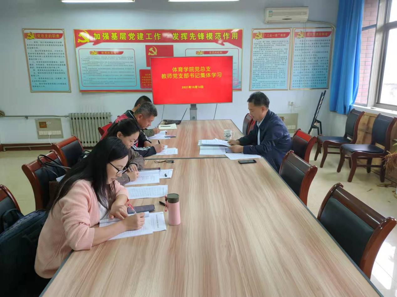 为深化党支部规范化建设,进一步提高党支部书记能力素质,按照学校组织部2021年教师党支部书记培训班的要求,10月14日下午,太阳成集团122ccvip党总支组织4名党支部书记在实验楼B7-318会议室开展集体学习与研讨,党总支书记马新民同志主持本次学习研讨。