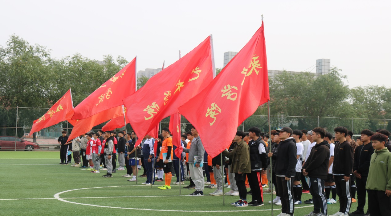 大会第一项全体师生齐唱国歌,行注目礼,礼毕由学生工作处王洪运副处长为大会致辞,他表示,此次足球比赛能够拉近各学院之间的距离,增加队员们之间的相互交流,同时各队员之间又能够相互学习,取长补短,做到友谊第一,比赛第二,最后,他希望各队员能够树立良好的团队意识,发扬拼搏的精神并预祝本次足球赛圆满成功。随后运动员代表和裁判员代表宣誓,最后,姚健副院长开球,宣布比赛开始。赛场上队员们顽强拼搏,场下观众欢呼呐喊,学校足球场上充满了紧张的足球比赛气氛,吸引了不少学生的驻足观看。