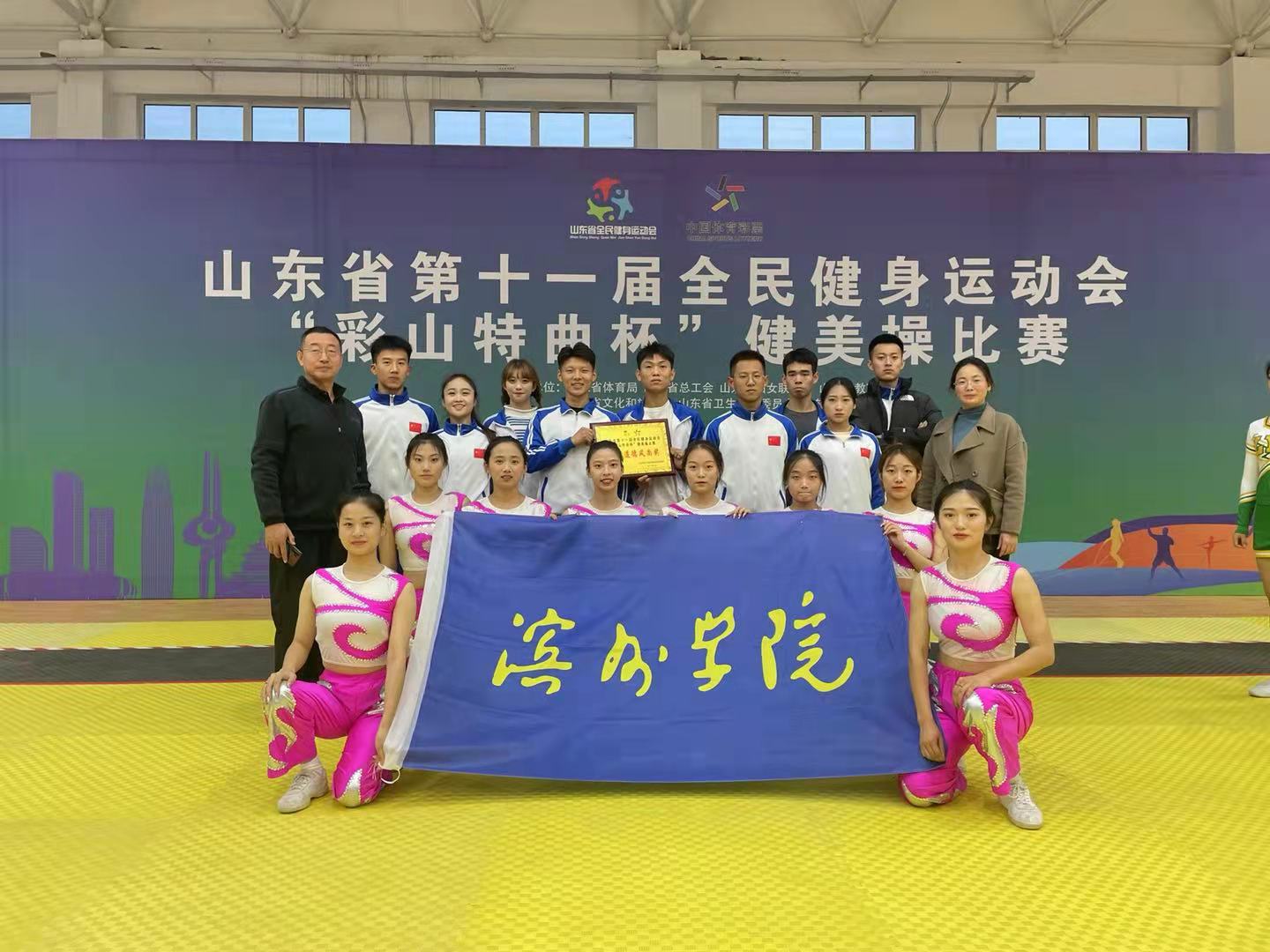 我校由周新、于宏亮、王颖、李文琼老师带队,太阳成集团122ccvip2019、2020、2021级舞蹈学(体育舞蹈 健美操)专业22名学生组队代表滨州市参加了10个项目的比赛,最终获一等奖2项、二等奖3项、三等奖2项的优异成绩,并获得“体育道德风尚奖”。