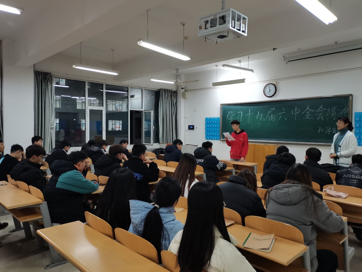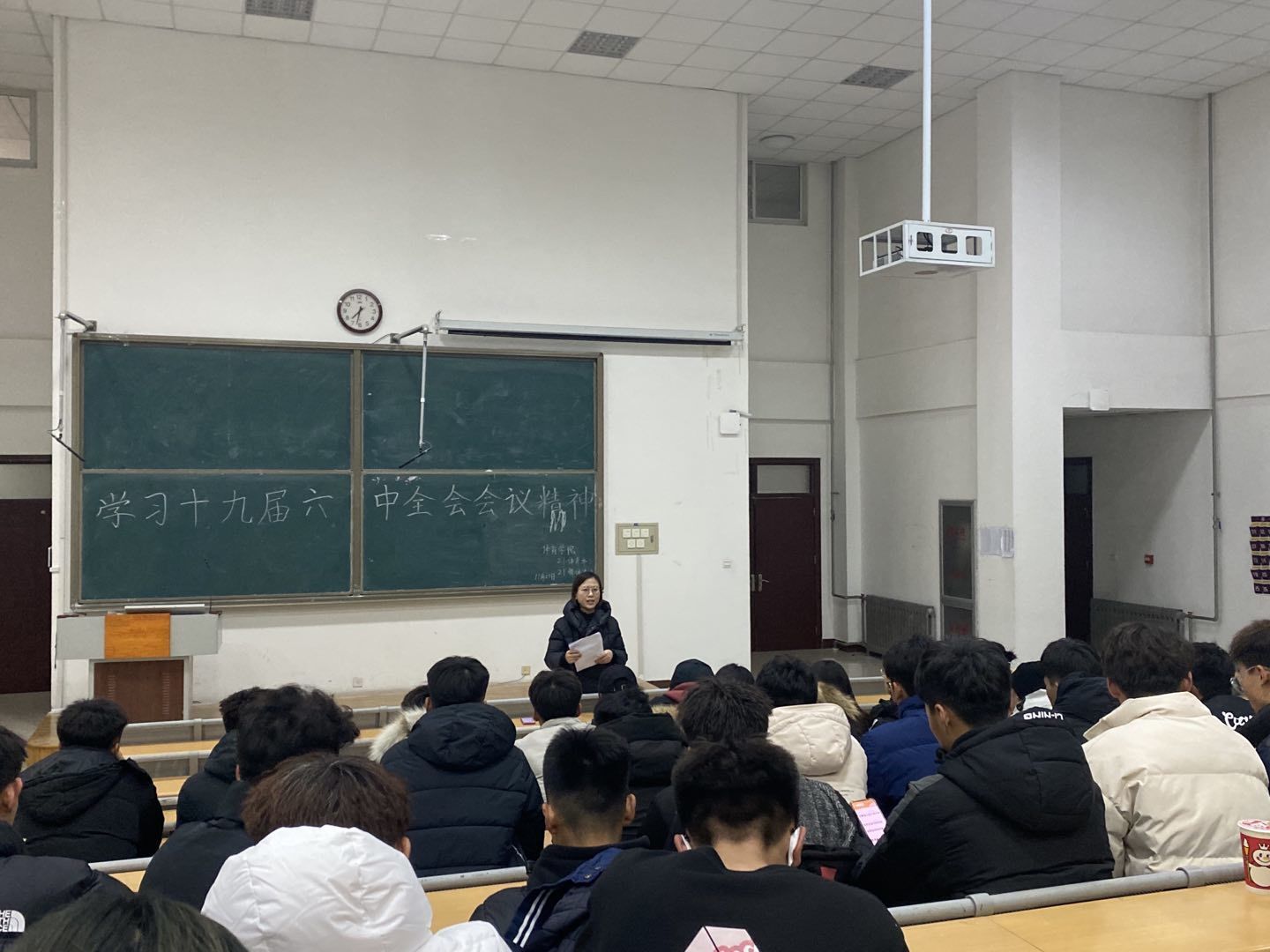 首先,由班主任给同学们介绍了关于党的十九届六中全会的全称,召开时间及地点还有主要议程,并播放十九届六中全会的相关视频,让同学们更好地学习十九届六中全会精神。同时,班主任寄语2021级学生:作为青年大学生,要以史为鉴,从党的百年党史中汲取智慧和力量,赓续红色血脉,传承红色精神,始终保持奋发有为的拼搏精神,把青春奋斗融入党和人民的事业,坚定“听党话、跟党走”的信心和决心,拿起社会主义接班人的接力棒,在新的征程上更加坚定、更加自觉地牢记初心使命、开创美好未来。学习结束后,部分学生干部发表学习感悟,表示要在今后认真夯实理论“基本功”,并且要将理论知识学深悟透、精读细研,将理论方法熟记于心,运用于实际。