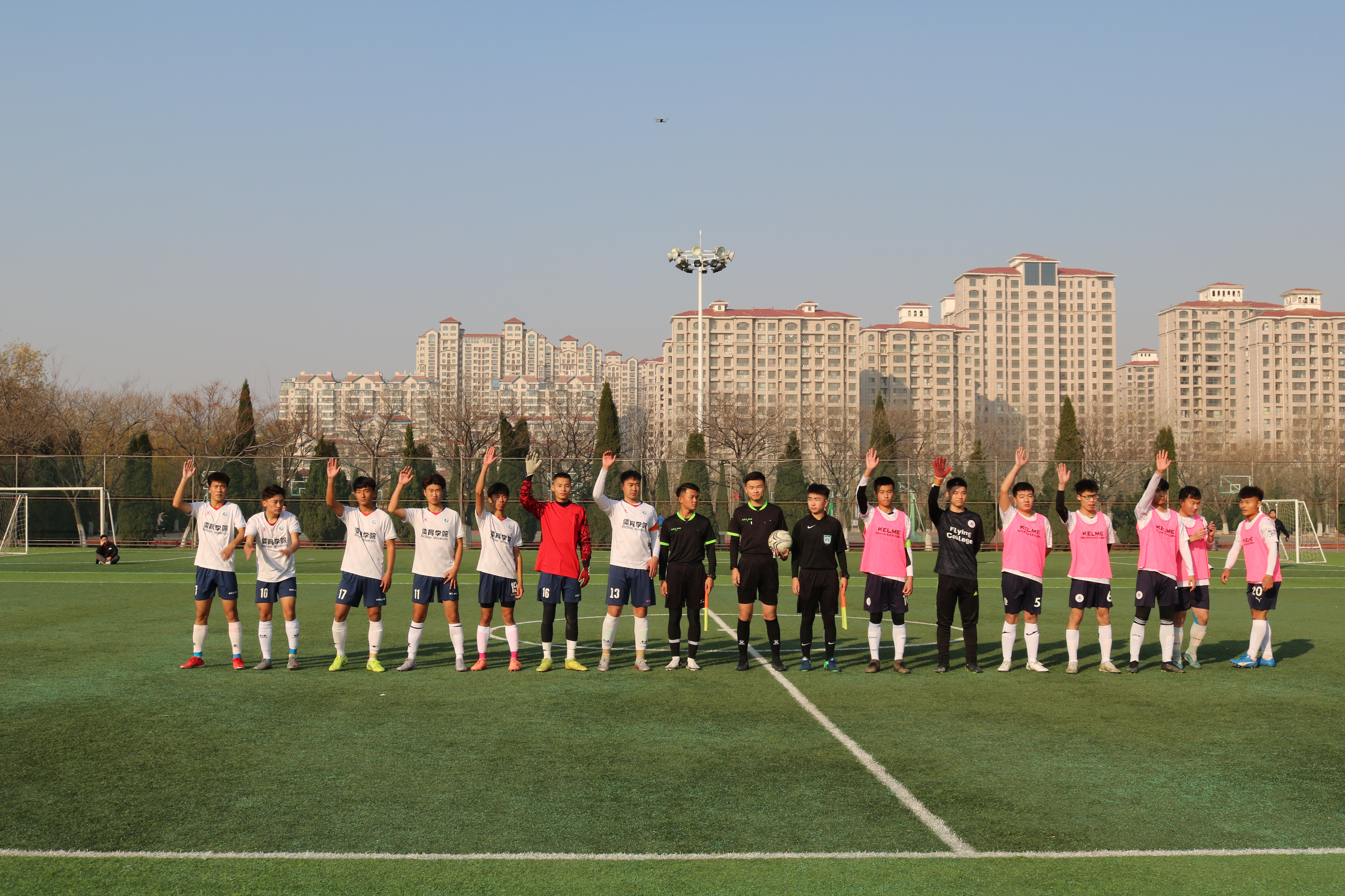 为发展学校体育运动,丰富校园体育文化生活,营造健康和谐的校园氛围,满足足球爱好者对足球运动的热爱。2021年“新文道杯”滨州学院足球社团迎新邀请赛“冠亚争夺战”于12月5日下午2点在学校足球场内隆重举行。