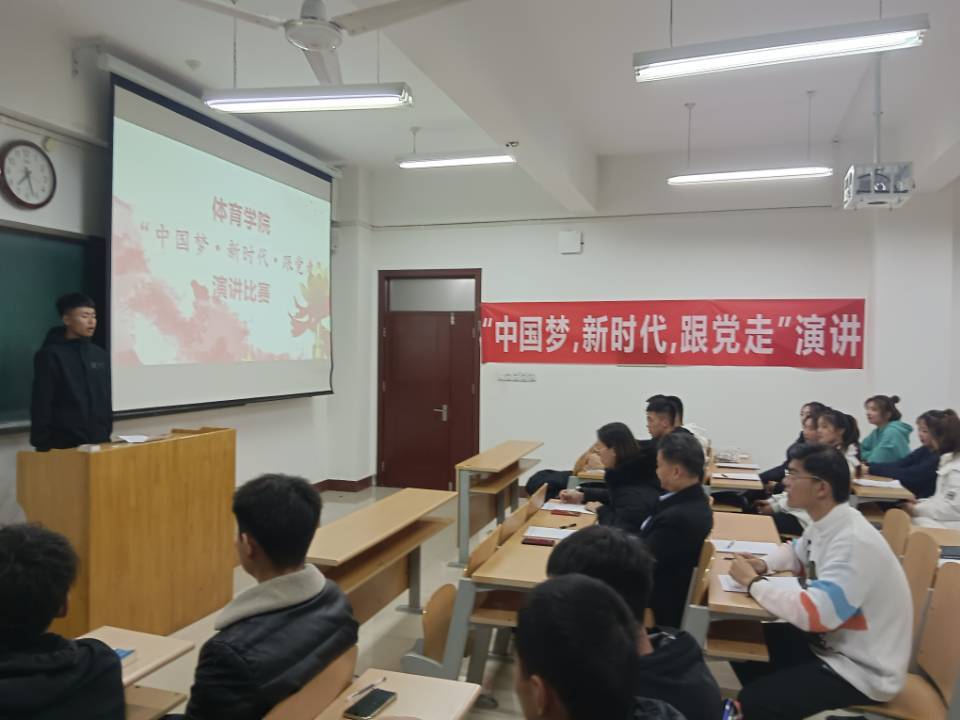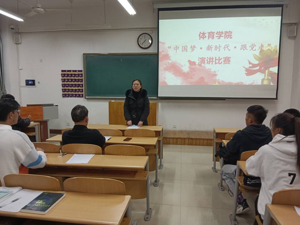 参赛的选手是经初赛选拔的优秀选手,有普通学生也有学生干部,比赛紧紧围绕“中国梦·新时代·跟党走”主题,讲述中国共产党团结带领全国各族人民,实现民族独立和人民解放、国家富强和人民幸福的百年光辉历程;这次活动主要目的一是增强同学们爱国、爱党的精神,二是在本次演讲活动中同学们相互学习增强演讲能力,比赛结束评选出名次。最终评出一等奖一个,二等奖一个,三等奖两个,分别是21舞体本二赵慧文,21体教本一高宇峰和21体教本一耿凯悦,21体教本二孙作芳。