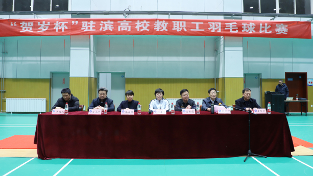 1223—24日,“贺岁杯”驻滨高校教职工羽毛球比赛在滨州学院新建体育馆成功举行。我校党委书记刘春华,党委委员、副校长孙银河,滨州医学院党委委员、副院长吕长俊,滨州职业学院党委委员、副院长宣永华,鲁北技师学院党委委员、副院长索荣利,滨州市技师学院党委委员、纪委书记、监察专员王文成等领导出席开幕式并参加比赛;滨州市教育局副局长、二级调研员蔡桂玲应邀出席了开幕式。