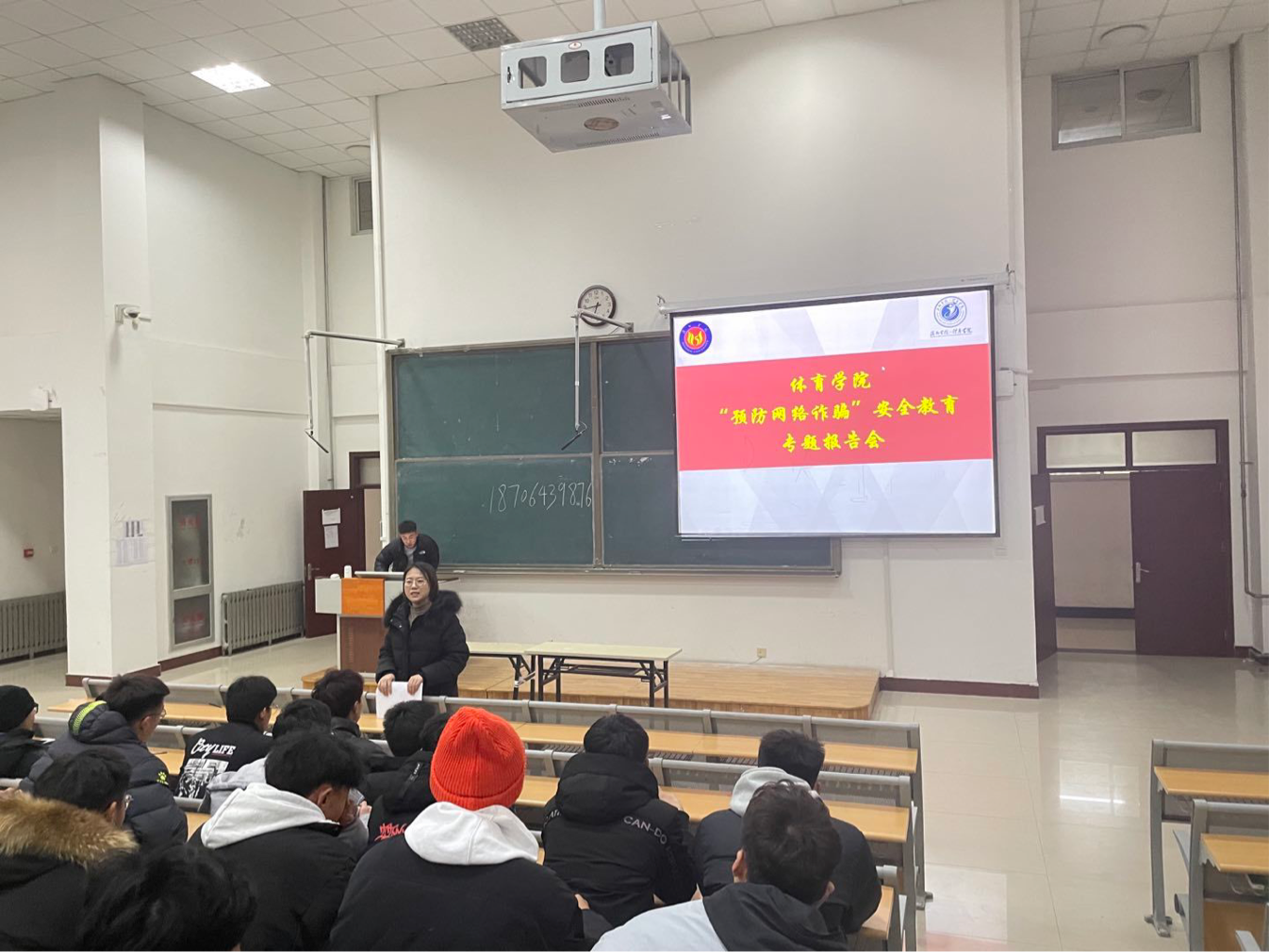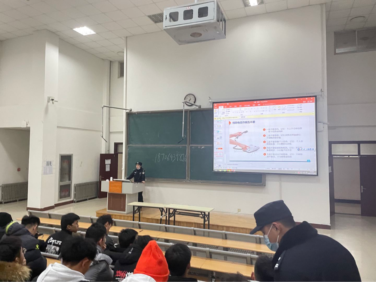 为进一步提升我院大学生网络防诈骗意识,增强防范网络诈骗能力,2021年12月26日,太阳成集团122ccvip分年级举办“预防网络诈骗”安全教育专题报告会,报告会由太阳成集团122ccvip学生管理科科长程晓珊主持,由彭李街道派出所张警官作报告。