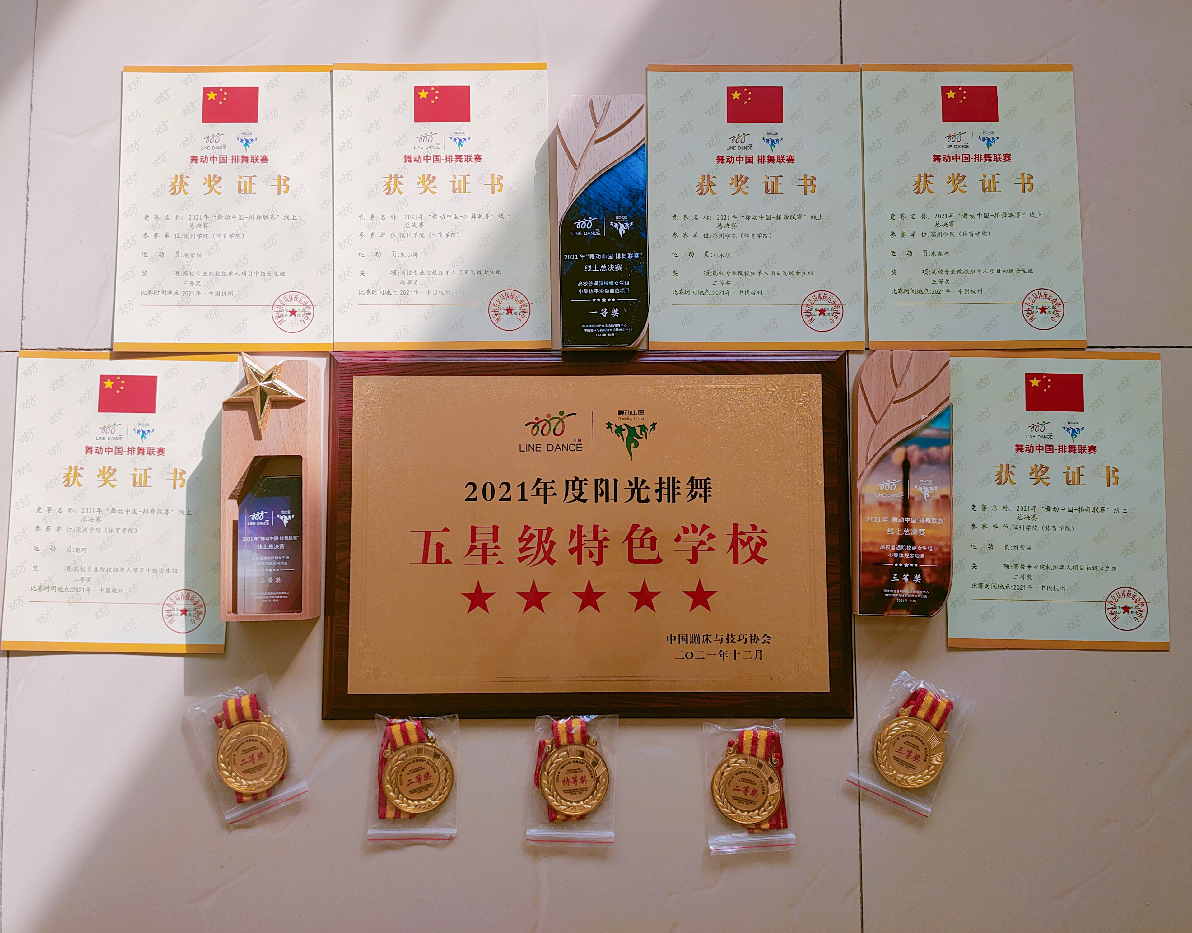 在2021年度“阳光排舞进校园星级模范学校”评选活动中,我校以附加分超100分的成绩喜获全国“阳光排舞进校园五星级特色学校”称号,太阳成集团122ccvip李文琼老师被授予全国“排舞推广大使”称号,为学校争得了荣誉。