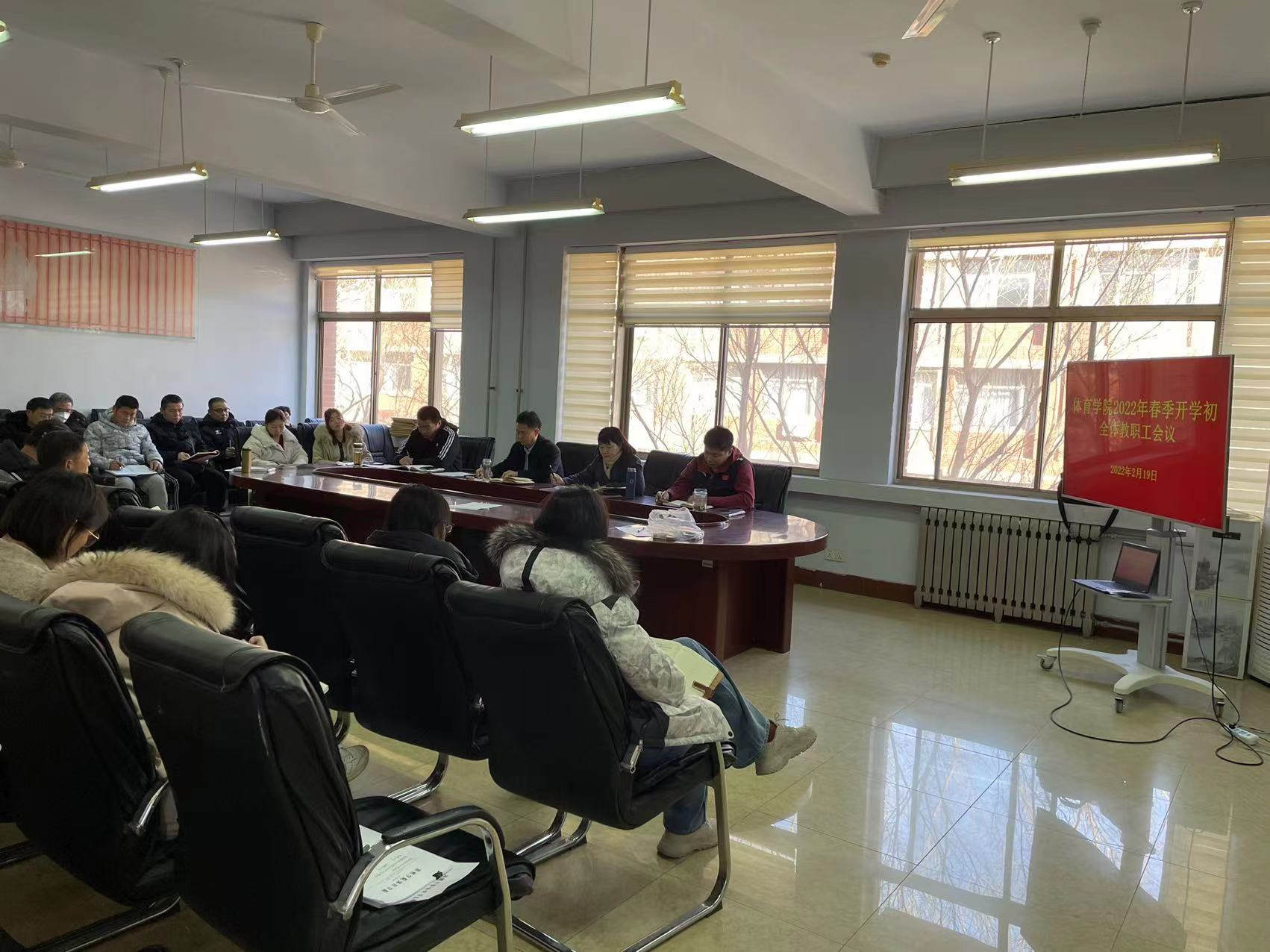 2月19日上午,在太阳成集团122ccvip会议室召开开学初全体教职工会议,总结评价去年工作成绩,安排部署新学年重点工作。会议由学院党总支书记马新民主持,学院领导班子成员、全体教职工参加会议。
