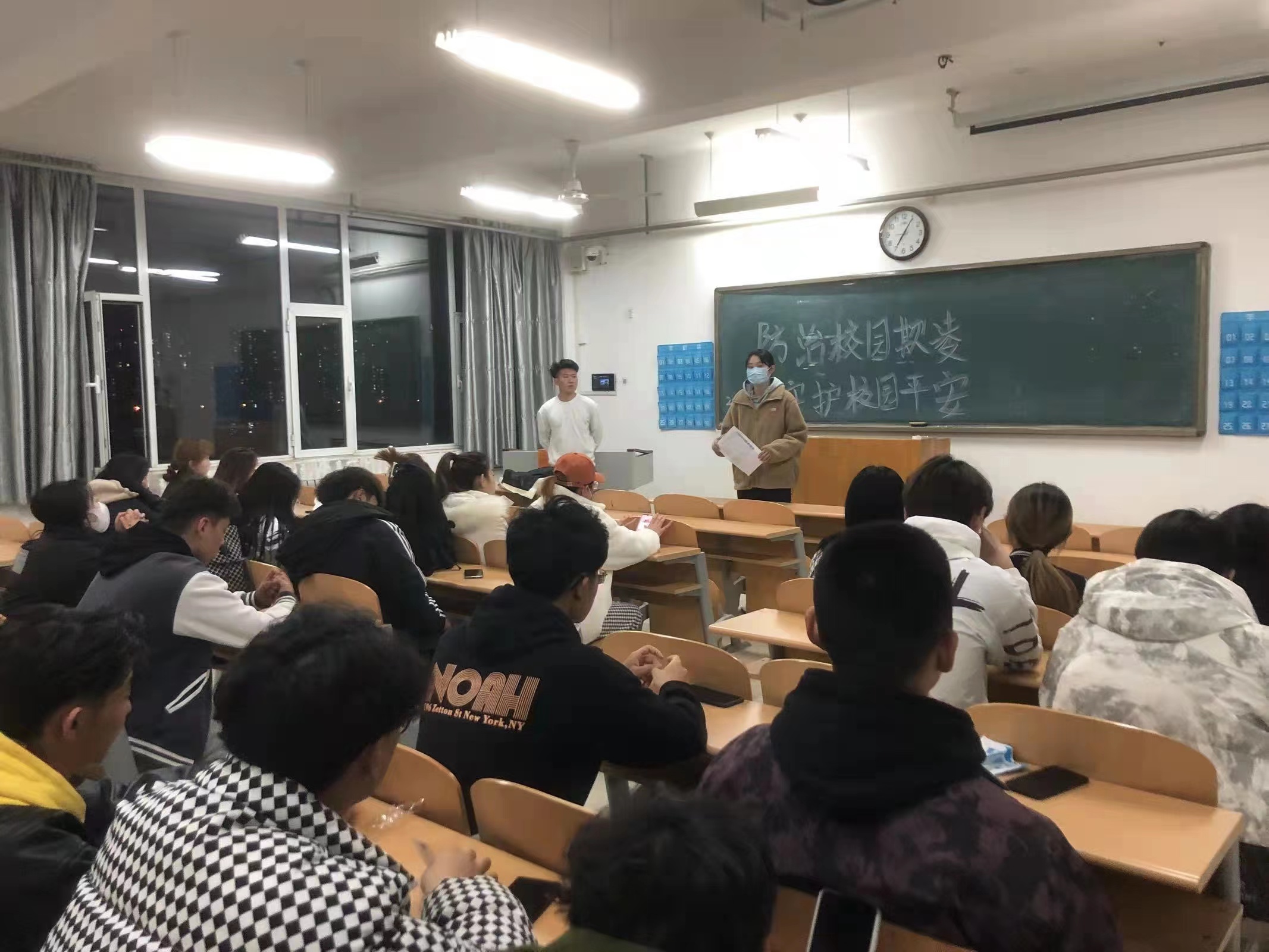为进一步增强学生的法治意识,严肃校规校纪,规范学生行为,守护学生的身心健康,巩固平安校园建设成果,根据学校通知要求,我院于2022年3月6日晚,以班为单位,在各班班主任的带领下召开“防治校园欺凌,守护校园平安”主题班会。