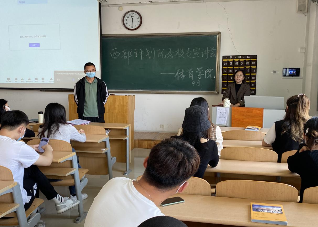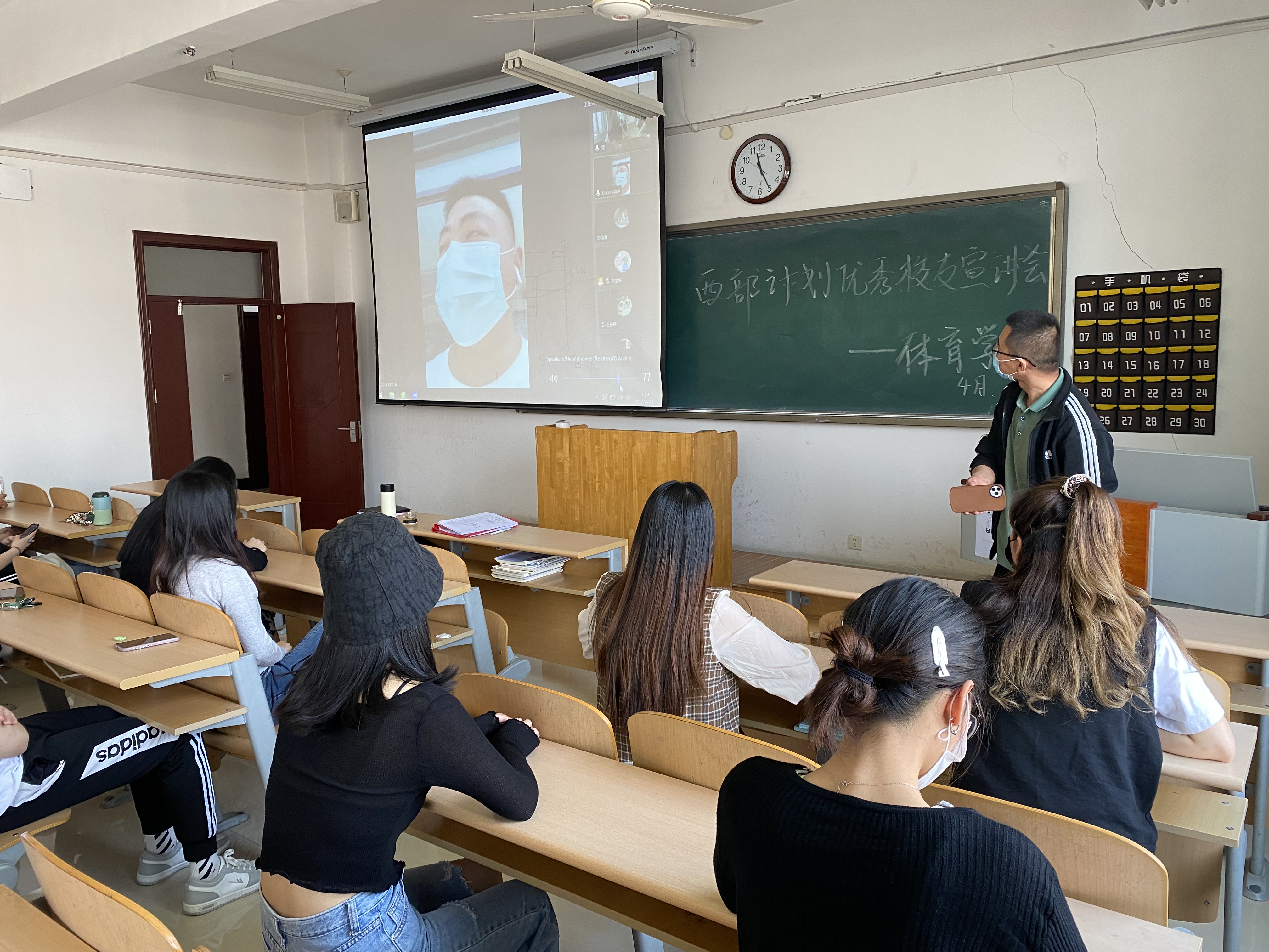 为做好疫情形势下毕业生工作,进一步响应学校号召,宣传西部计划志愿者的感人事迹,鼓励更多毕业生投身到“西部计划”中来,4月23日,滨州学院太阳成集团122ccvip举办大学生西部计划优秀志愿者宣讲交流会,会议邀请了2019年到新疆志愿服务的刘宝新和2019年参加山东计划的蔡洪强,两位校友。会议由太阳成集团122ccvip团总支书程晓珊主持,全体辅导员和60余名2022届毕业生参加了这次会议。