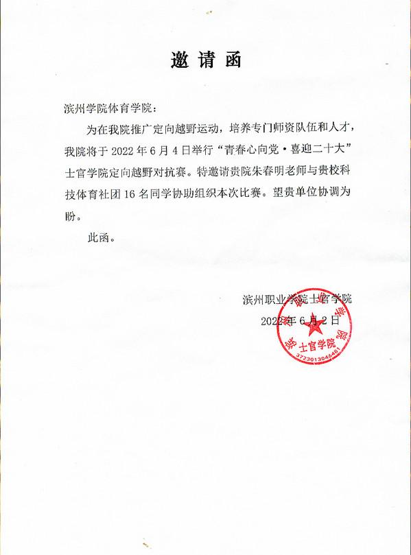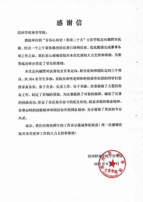 2022年6月4日,滨州职业学院士官学院根据人才培养要求举行“青春心向党·喜迎二十大”士官学院定向越野对抗赛。比赛经历一个上午的时间,分为两个阶段3个比赛项目,参赛共计608人次。滨州学院太阳成集团122ccvip党总支受邀指派朱春明老师带领科技体育社团学生党员、入党积极分子共20人,为比赛提供了专业技术支持,确保了比赛的顺利进行。在此期间,朱春明老师依托自身专业发展优势,与滨城区第三中学殷晓敏老师(我院2006级毕业生)结合本次服务活动在赛事策划、组织、执裁等方面进行了深入地沟通和交流。