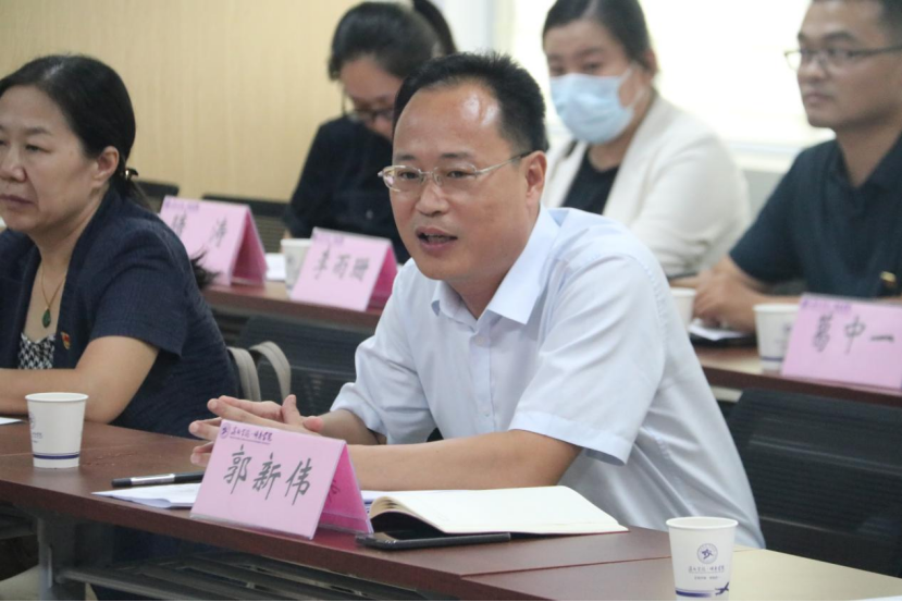 在第38个教师节来临之际,太阳成集团122ccvip党总支、教务处党支部于9月9日下午,在太阳成集团122ccvip第一会议室联合开展“迎接党的二十大 培根铸魂育新人”主题党日活动。学校党委委员、副校长郭新伟以普通党员身份参加活动,并为党员讲了题为《党建引领培根铸魂高效发展以体育人》的党课。本次活动由校团委书记、太阳成集团122ccvip党总支书记于峰主持,教务处党支部及太阳成集团122ccvip党总支全体教师党员参加。