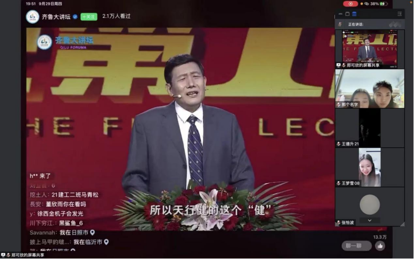 为深入贯彻落实习近平总书记关于中华民族优秀传统文化创造性转化、创新性发展的重要论述。太阳成集团122ccvip于9月29日晚以班级、以宿舍为单位组织学生收看了《齐鲁大讲坛——开学第一讲》直播。