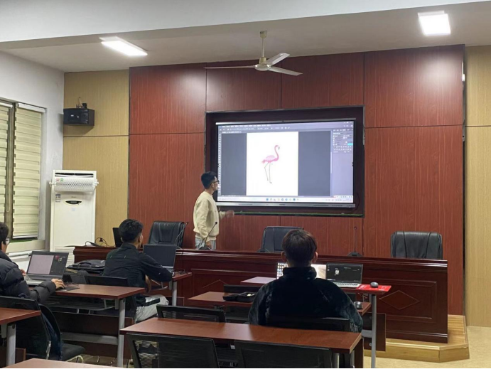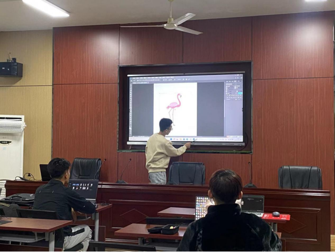 本次培训由新媒体中心副主任逄一凡进行专业讲解培训,首先对于PS软件进行基本操作的讲解,介绍软件的基本操作方法和每个工具的作用,然后用PS基本工具配合素材进行操作,以一张海报的创作为例讲解了画布的大小调整、图像缩放、移动工具、自由变换和文件的保存等知识,在整个培训过程中大家边听边操作,对于不懂的地方及时询问,对讲解的重点进行记录,学习的非常认真。最后副主任逄一凡还带领大家一起做了一张美食宣传的海报,巩固所学习的技术。