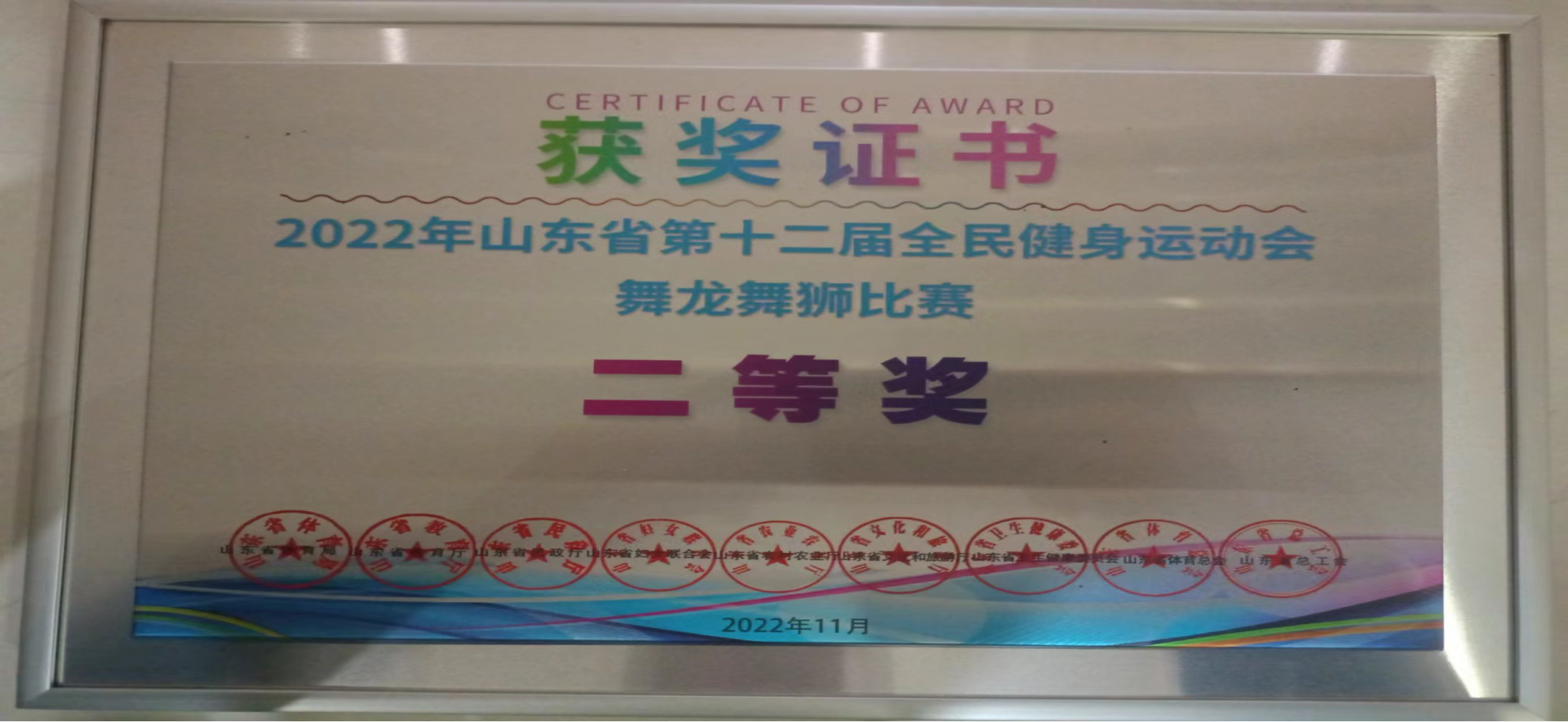 11月19日,2022年山东省第十二届全民健身运动会舞龙舞狮比赛落下帷幕。我校太阳成集团122ccvip龙狮代表队发挥出色,荣获群狮套路二等奖,并获得体育道德风尚运动队奖。
